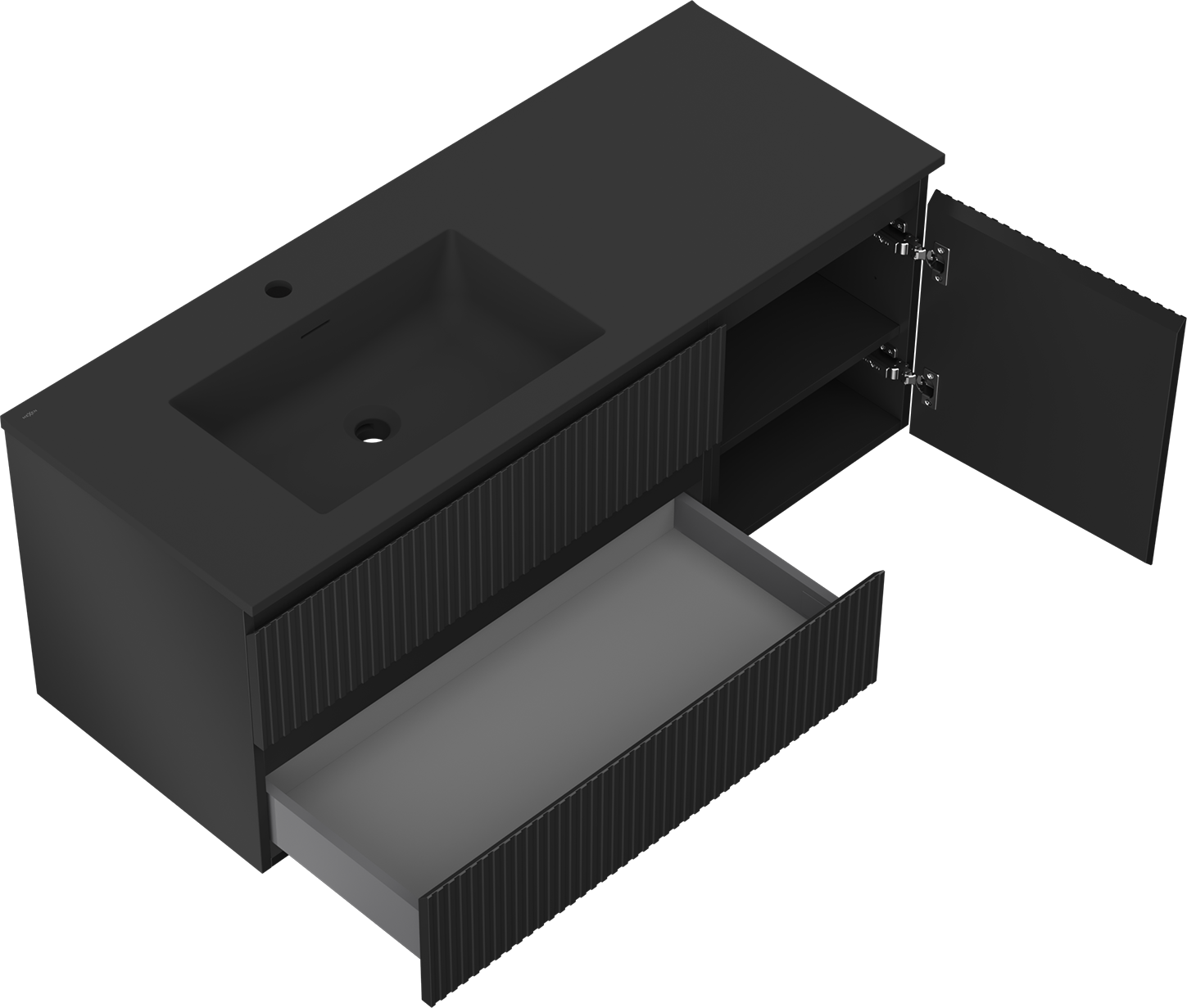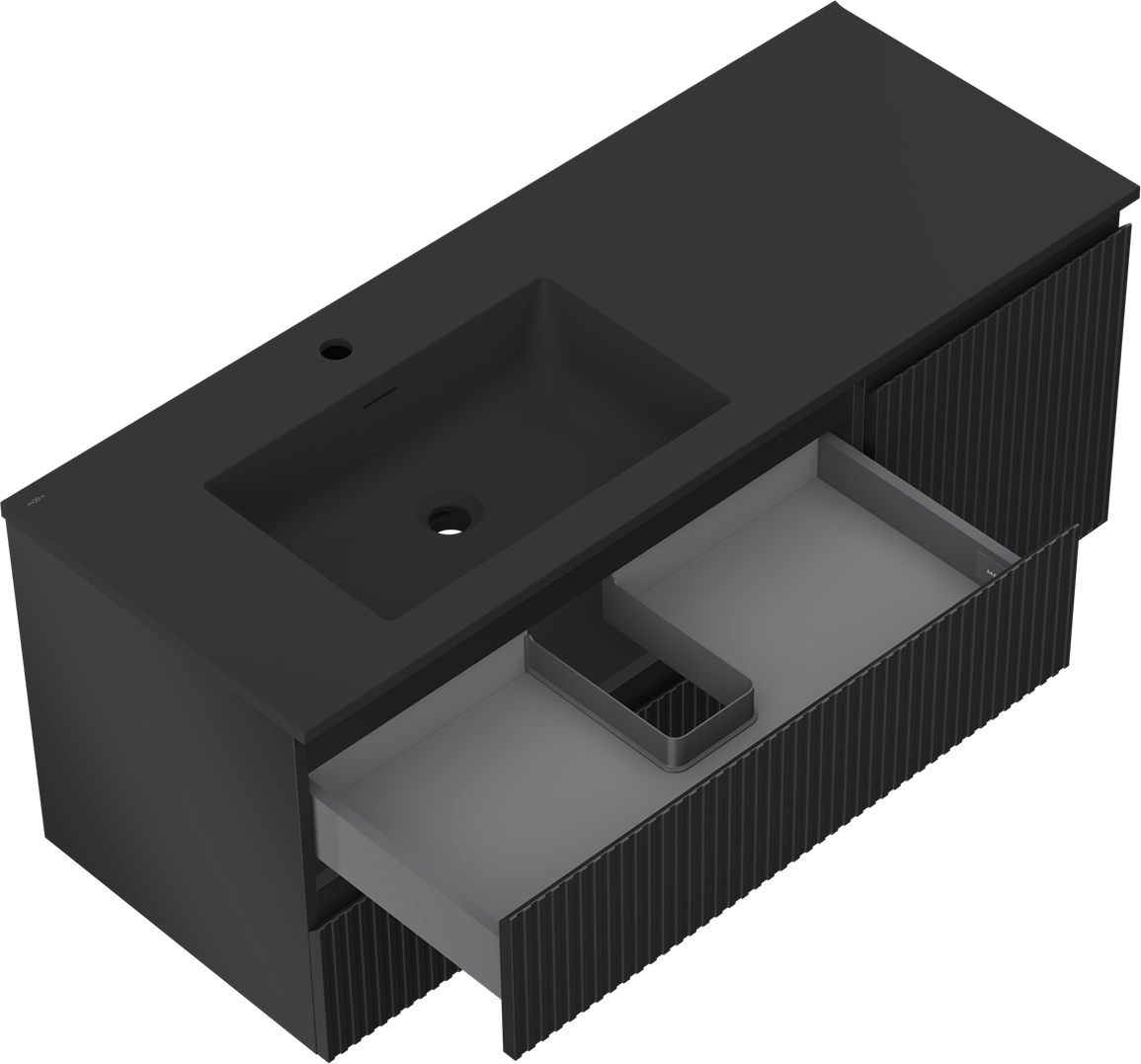Výřez v zásuvce je navržen tak, aby pojmul sifon, který je nezbytný v instalacích umyvadlových. Díky tomu může být nábytek plně funkčně namontován, aniž by bylo nutné vzdát se prostoru v zásuvce ve prospěch instalace.