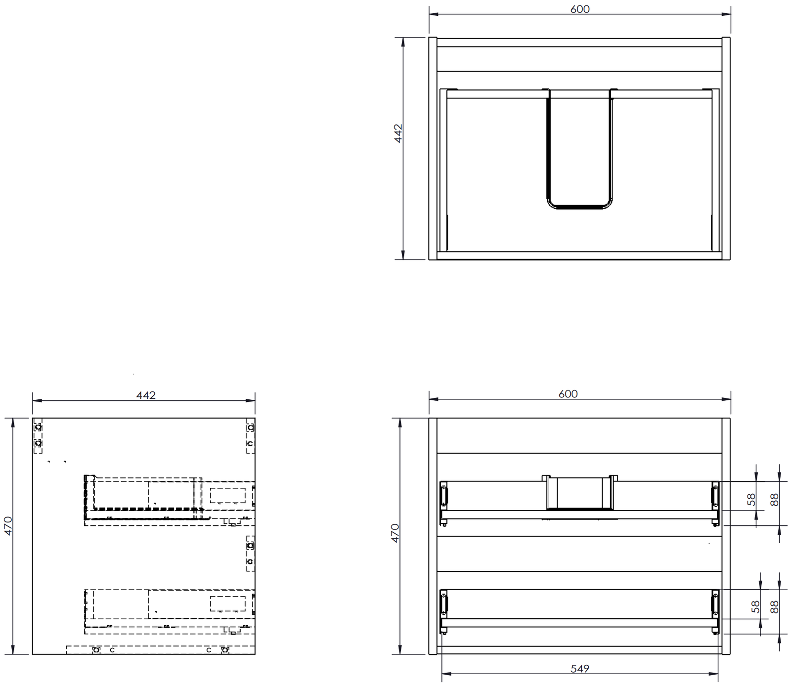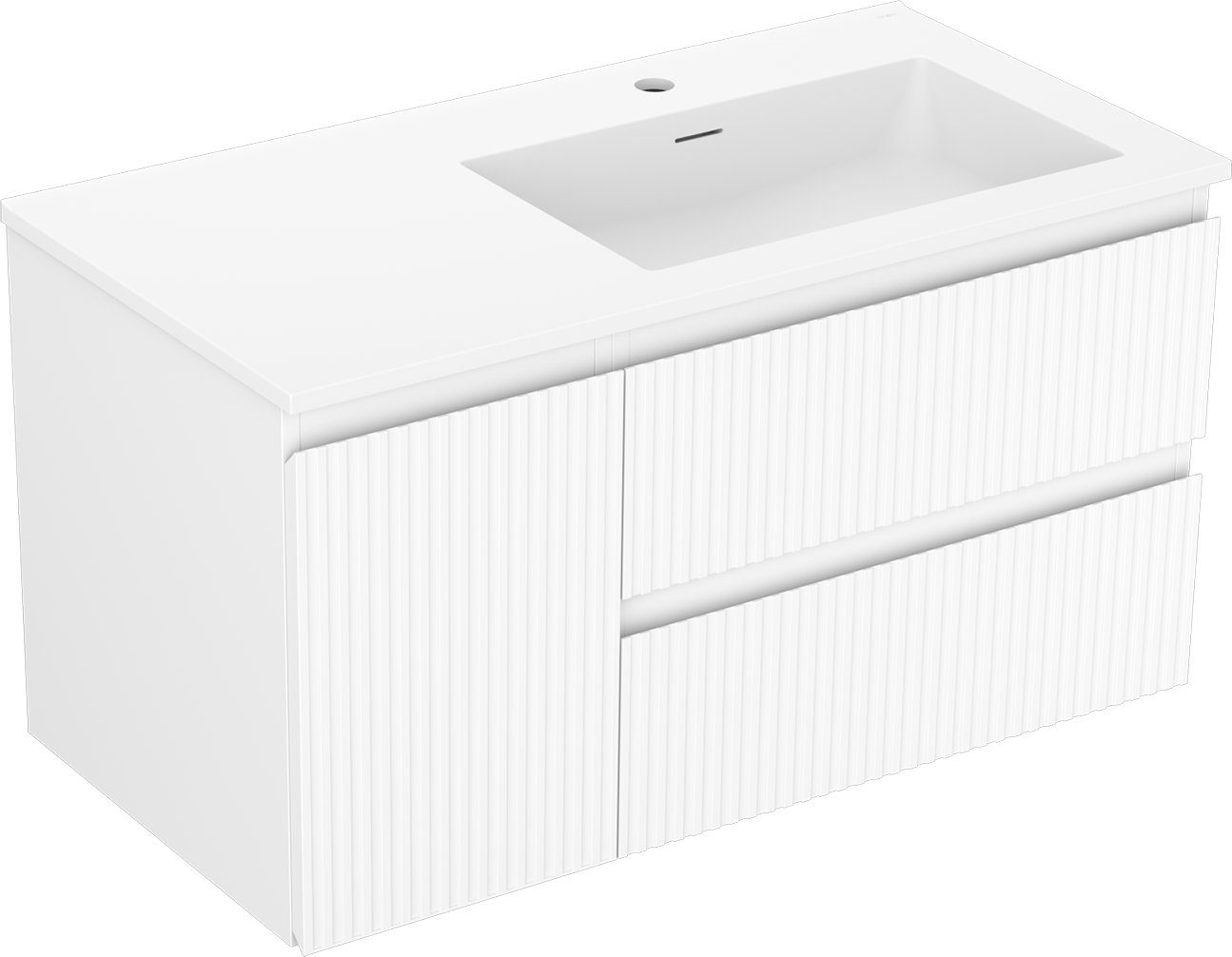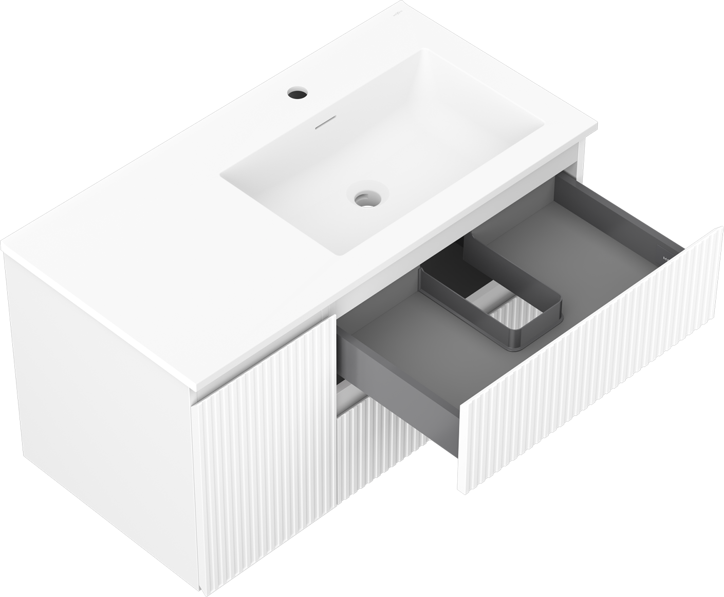 Výřez v zásuvce je navržen tak, aby pojmul sifon, který je nezbytný v instalacích umyvadlových. Díky tomu může být nábytek plně funkčně namontován, aniž by bylo nutné vzdát se prostoru v zásuvce ve prospěch instalace.