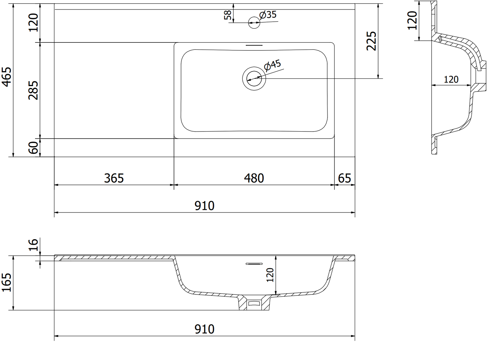 Materiál umyvadla: Kompozit