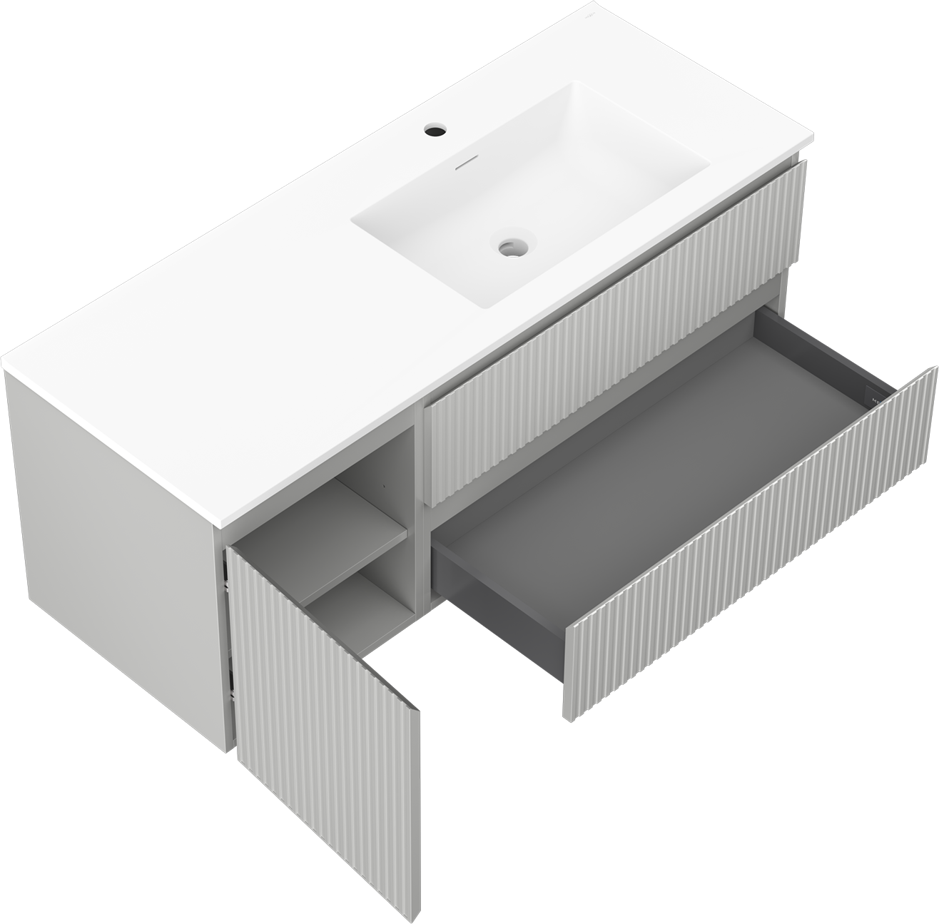 Naše modulární koupelnový nábytek lze kombinovat v různých barevných konfiguracích, což umožňuje plnou personalizaci. Můžete si vybrat jak vzhled, tak funkce jednotlivých prvků, což umožňuje přizpůsobit nábytek vašim stylovým a uživatelským preferencím.
