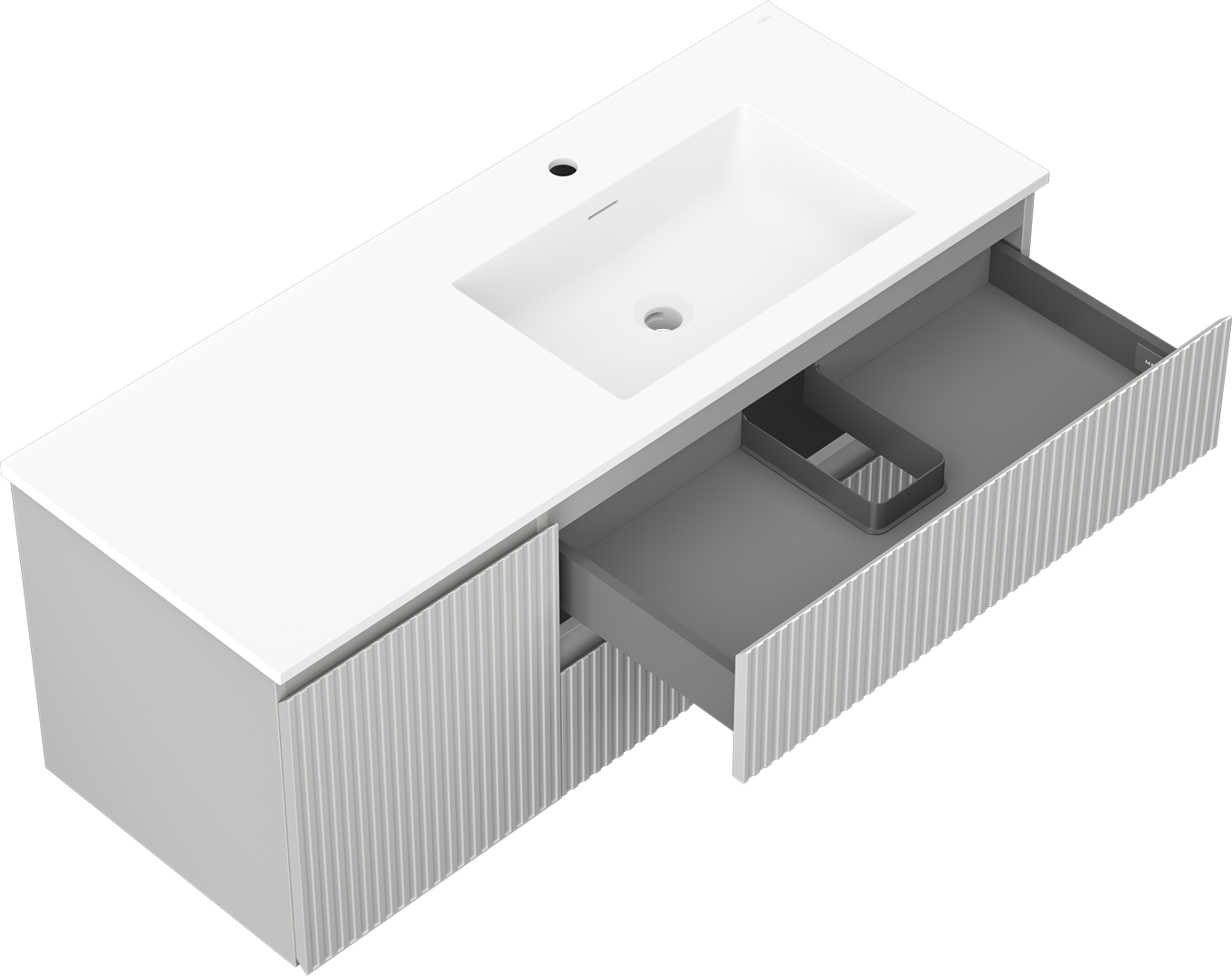 Výřez v zásuvce je navržen tak, aby pojmul sifon, který je nezbytný v instalacích umyvadlových. Díky tomu může být nábytek plně funkčně namontován, aniž by bylo nutné vzdát se prostoru v zásuvce ve prospěch instalace.
