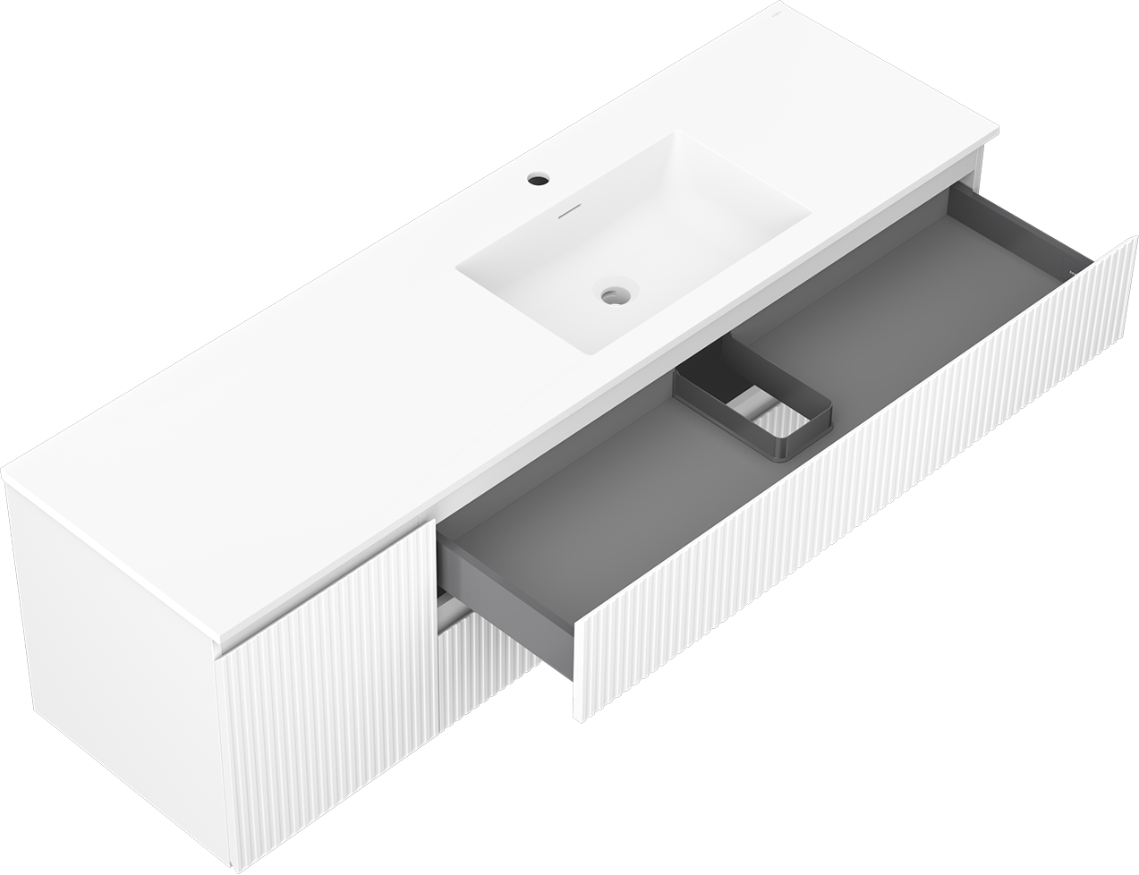 Výřez v zásuvce je navržen tak, aby pojmul sifon, který je nezbytný v instalacích umyvadlových. Díky tomu může být nábytek plně funkčně namontován, aniž by bylo nutné vzdát se prostoru v zásuvce ve prospěch instalace.