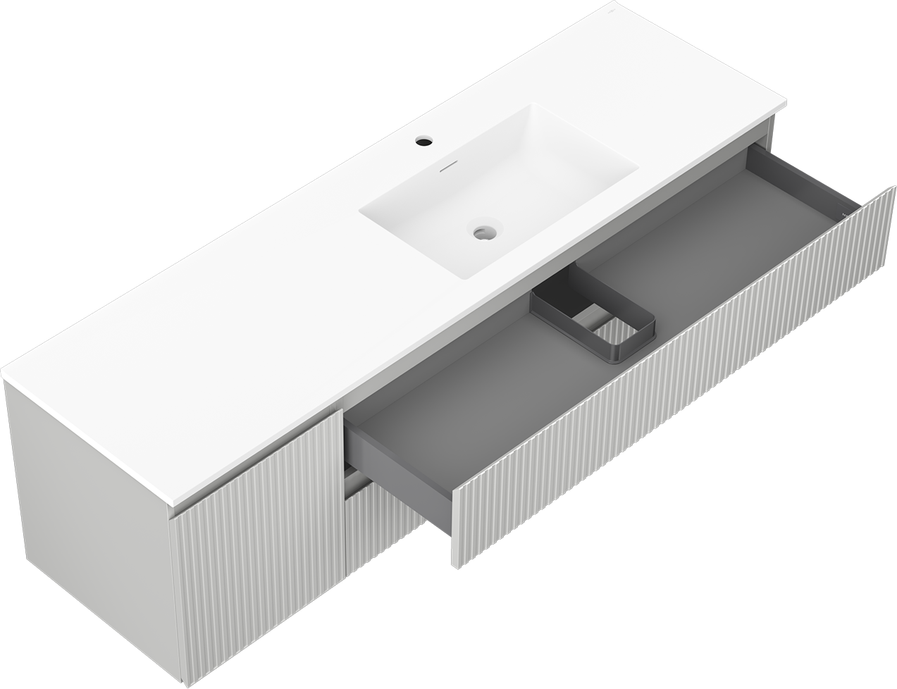 Výřez v zásuvce je navržen tak, aby pojmul sifon, který je nezbytný v instalacích umyvadlových. Díky tomu může být nábytek plně funkčně namontován, aniž by bylo nutné vzdát se prostoru v zásuvce ve prospěch instalace.