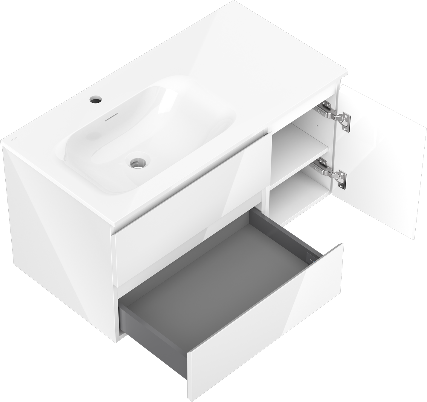 Výřez v zásuvce je navržen tak, aby pojmul sifon, který je nezbytný v instalacích umyvadlových. Díky tomu může být nábytek plně funkčně namontován, aniž by bylo nutné vzdát se prostoru v zásuvce ve prospěch instalace.