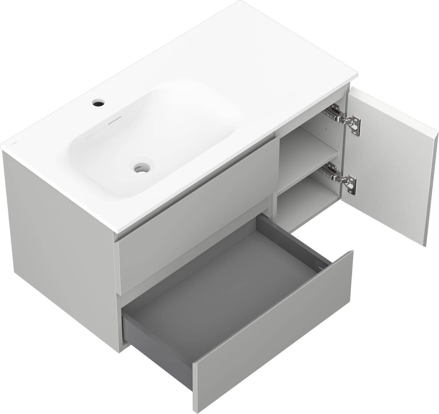 Výřez v zásuvce je navržen tak, aby pojmul sifon, který je nezbytný v instalacích umyvadlových. Díky tomu může být nábytek plně funkčně namontován, aniž by bylo nutné vzdát se prostoru v zásuvce ve prospěch instalace.