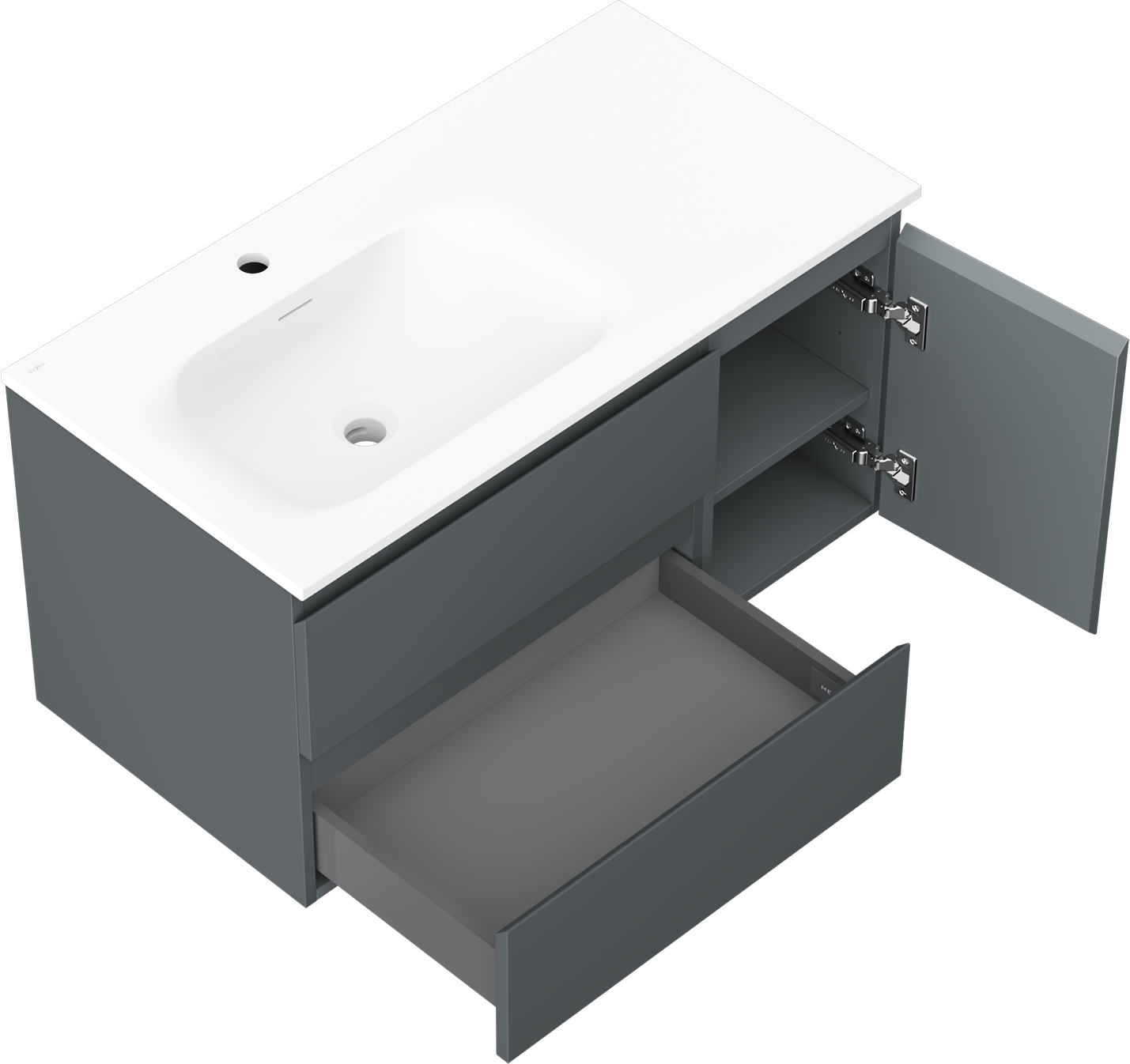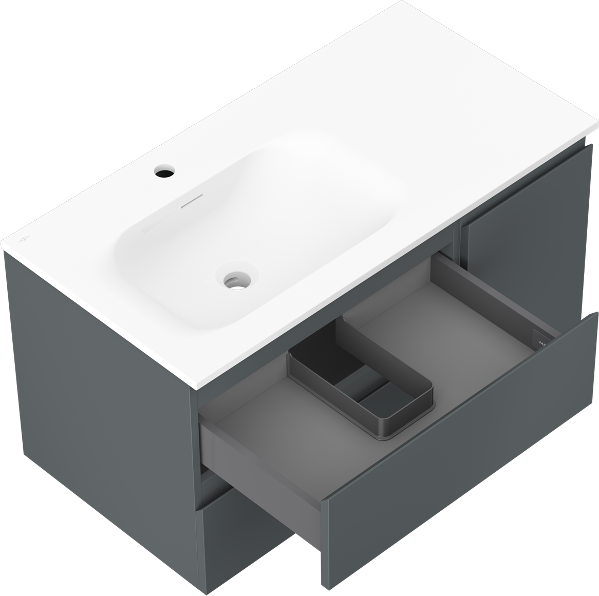 Výřez v zásuvce je navržen tak, aby pojmul sifon, který je nezbytný v instalacích umyvadlových. Díky tomu může být nábytek plně funkčně namontován, aniž by bylo nutné vzdát se prostoru v zásuvce ve prospěch instalace.