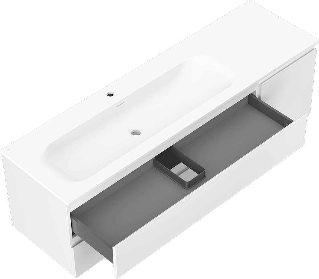 Výřez v zásuvce je navržen tak, aby pojmul sifon, který je nezbytný v instalacích umyvadlových. Díky tomu může být nábytek plně funkčně namontován, aniž by bylo nutné vzdát se prostoru v zásuvce ve prospěch instalace.