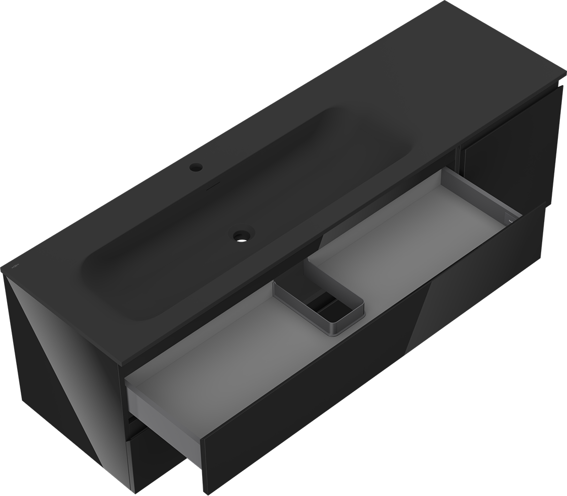 Výřez v zásuvce je navržen tak, aby pojmul sifon, který je nezbytný v instalacích umyvadlových. Díky tomu může být nábytek plně funkčně namontován, aniž by bylo nutné vzdát se prostoru v zásuvce ve prospěch instalace.