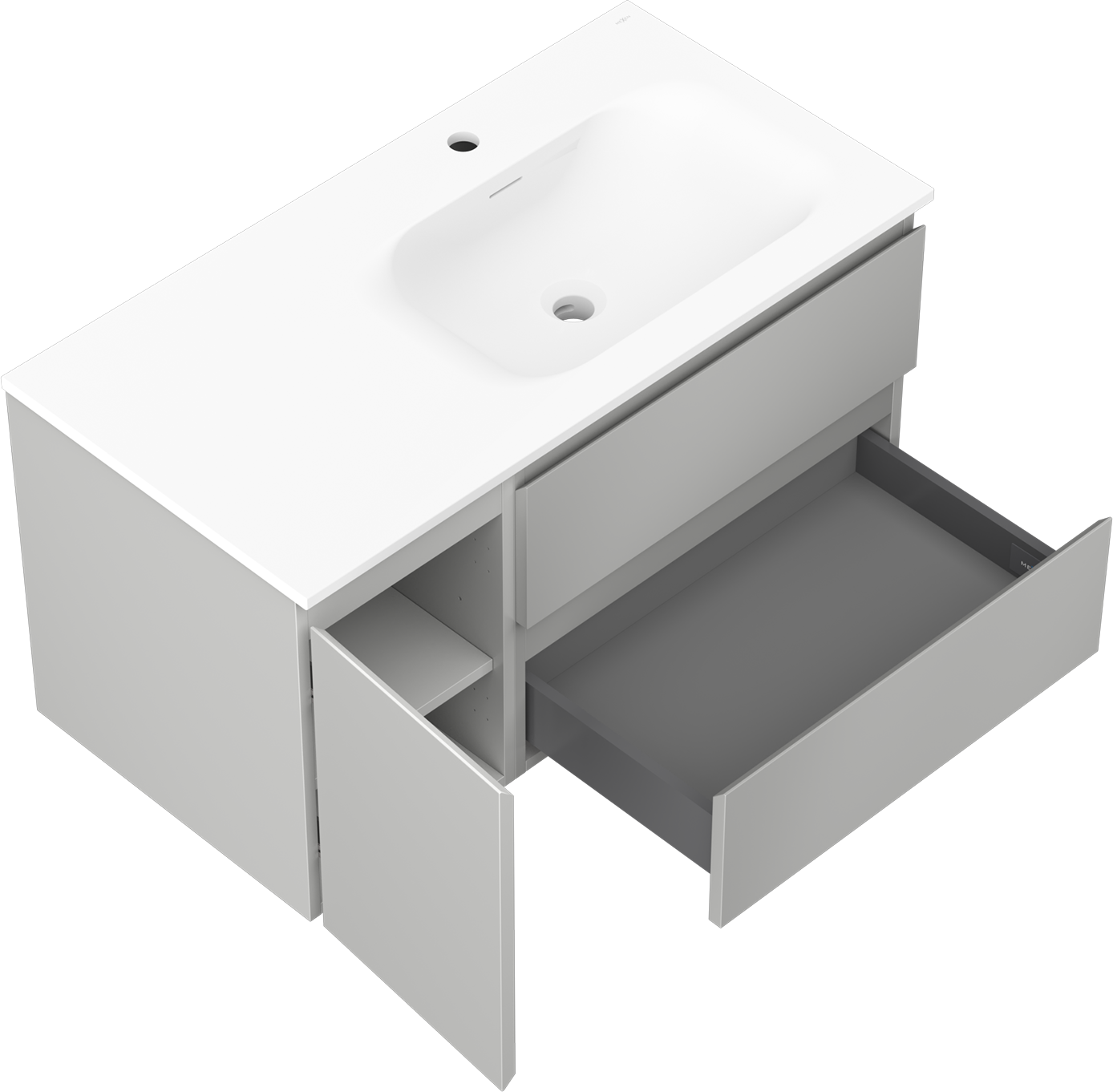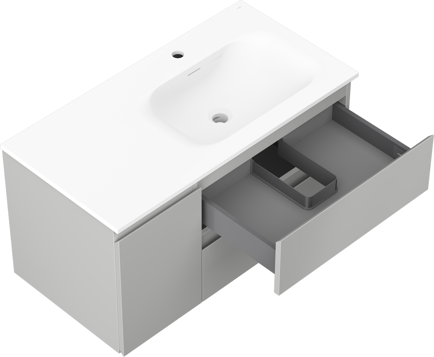 Výřez v zásuvce je navržen tak, aby pojmul sifon, který je nezbytný v instalacích umyvadlových. Díky tomu může být nábytek plně funkčně namontován, aniž by bylo nutné vzdát se prostoru v zásuvce ve prospěch instalace.