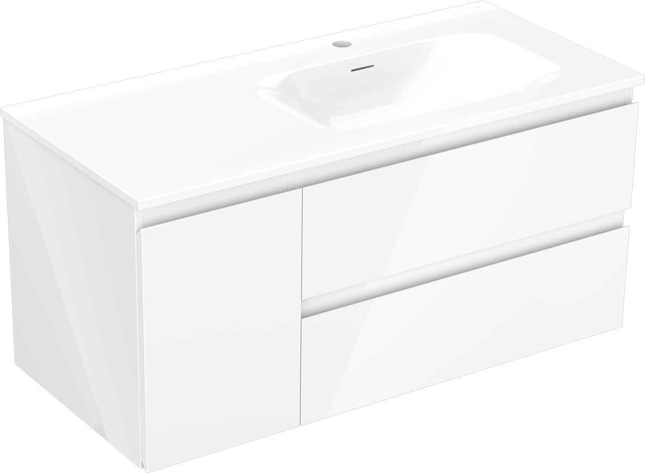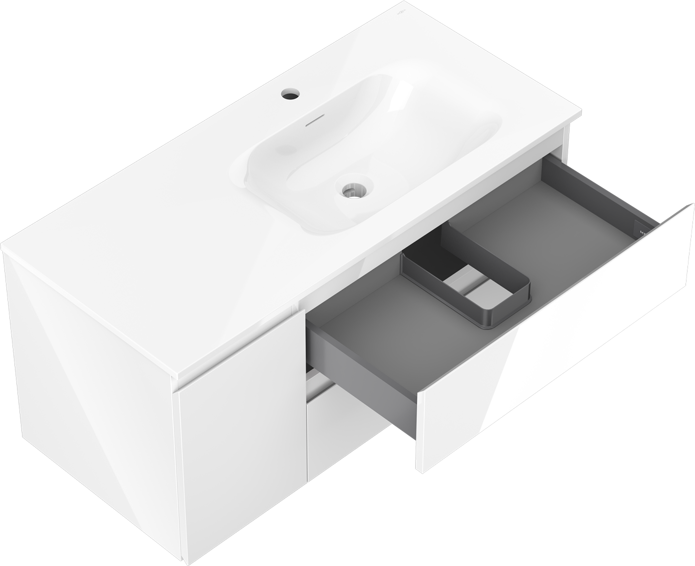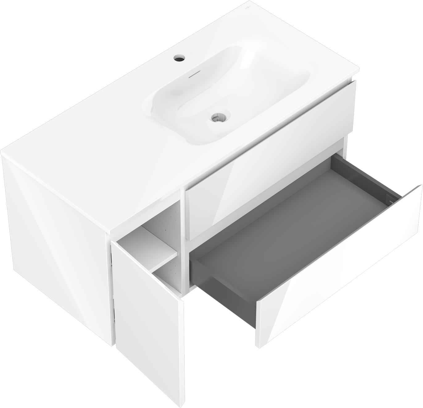 Mexen Orio koupelnová skříňka 100 cm s umyvadlem Vela pravá, 2S, 1D, bílý lesk - 91A13-10047-3-BBFFF00-W23P00
