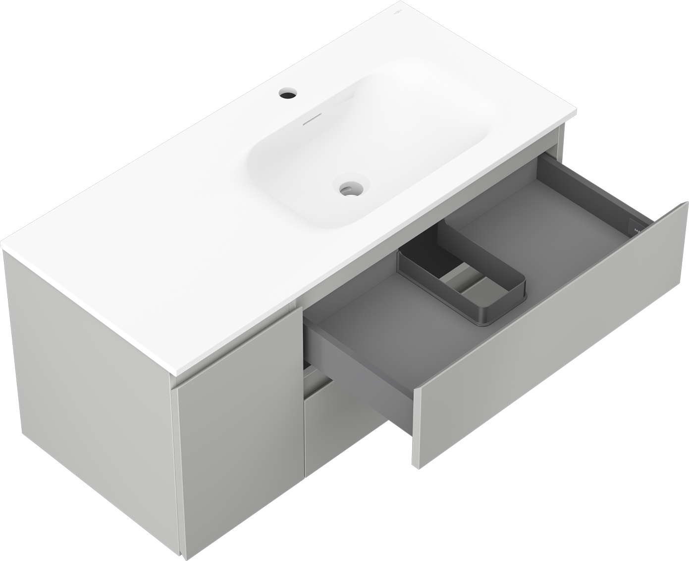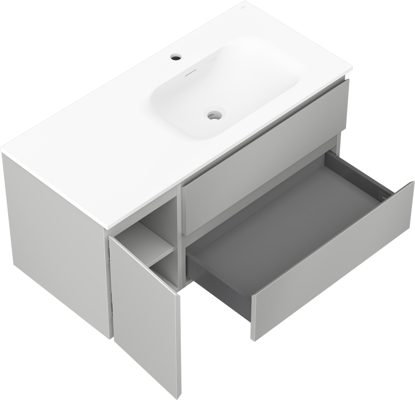 Mexen Orio koupelnová skříňka 100 cm s umyvadlem Vela pravá, 2S, 1D, šedá mat/bílá mat - 91A13-10047-3-BBFFF62-W23P01