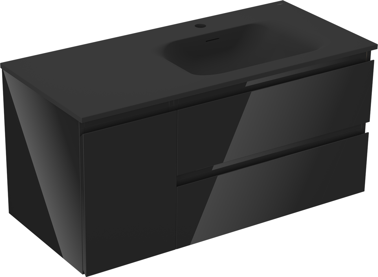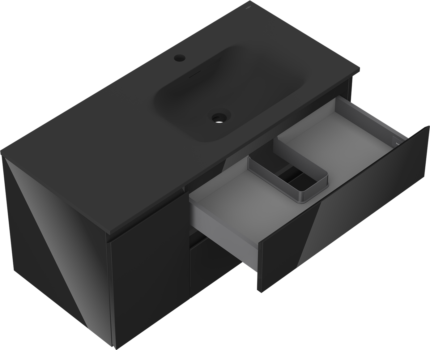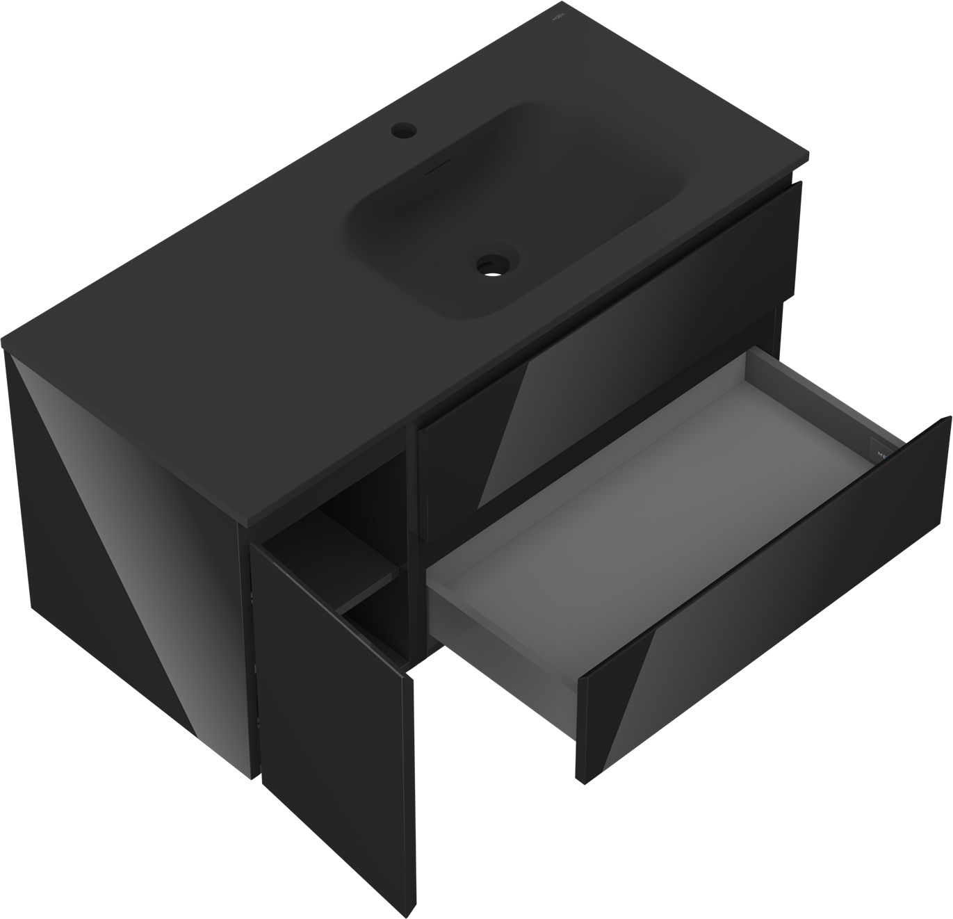 Mexen Orio koupelnová skříňka 100 cm s umyvadlem Vela pravá, 2S, 1D, černý lesk/černý mat