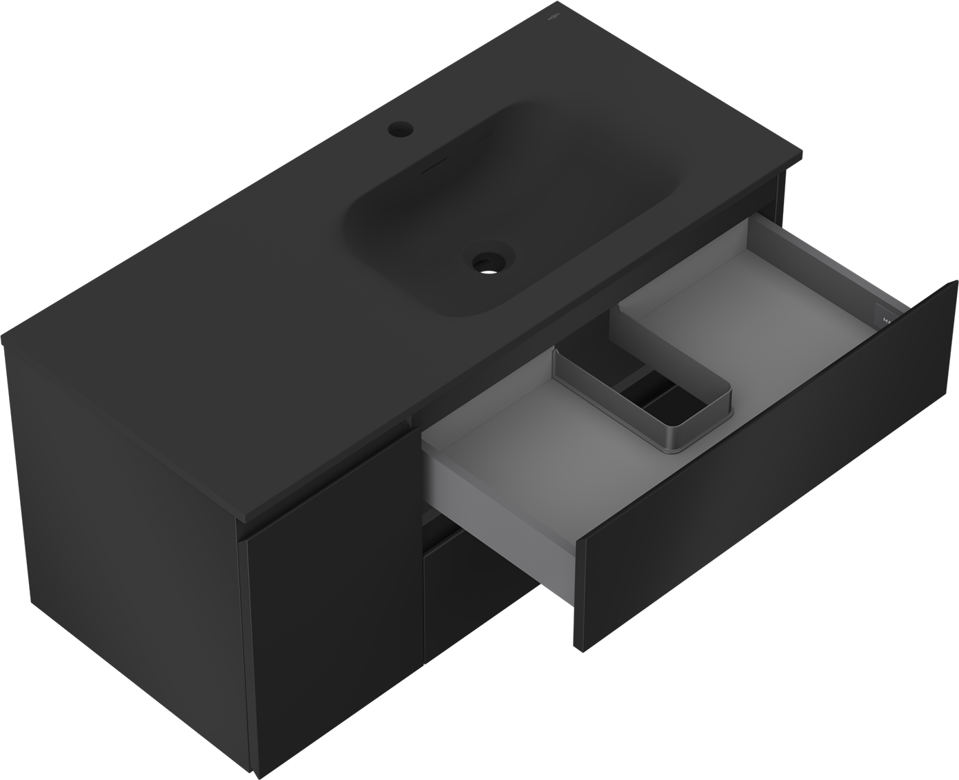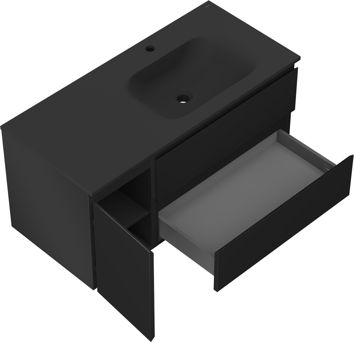 Mexen Orio koupelnová skříňka 100 cm s umyvadlem Vela pravým, 2S, 1D, černá matná - 91A13-10047-3-BBFFF71-W23P71
