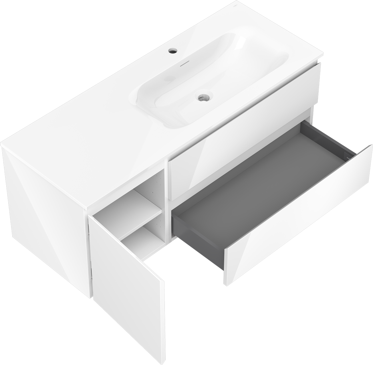 Výřez v zásuvce je navržen tak, aby pojmul sifon, který je nezbytný v instalacích umyvadlových. Díky tomu může být nábytek plně funkčně namontován, aniž by bylo nutné vzdát se prostoru v zásuvce ve prospěch instalace.