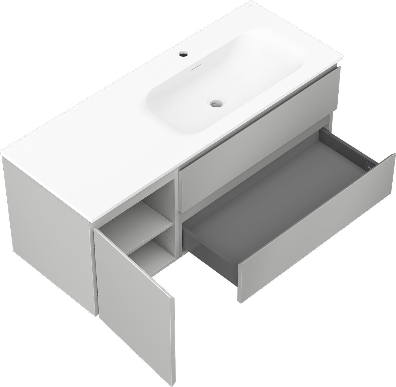 Naše modulární koupelnový nábytek lze kombinovat v různých barevných konfiguracích, což umožňuje plnou personalizaci. Můžete si vybrat jak vzhled, tak funkce jednotlivých prvků, což umožňuje přizpůsobit nábytek vašim stylovým a uživatelským preferencím.