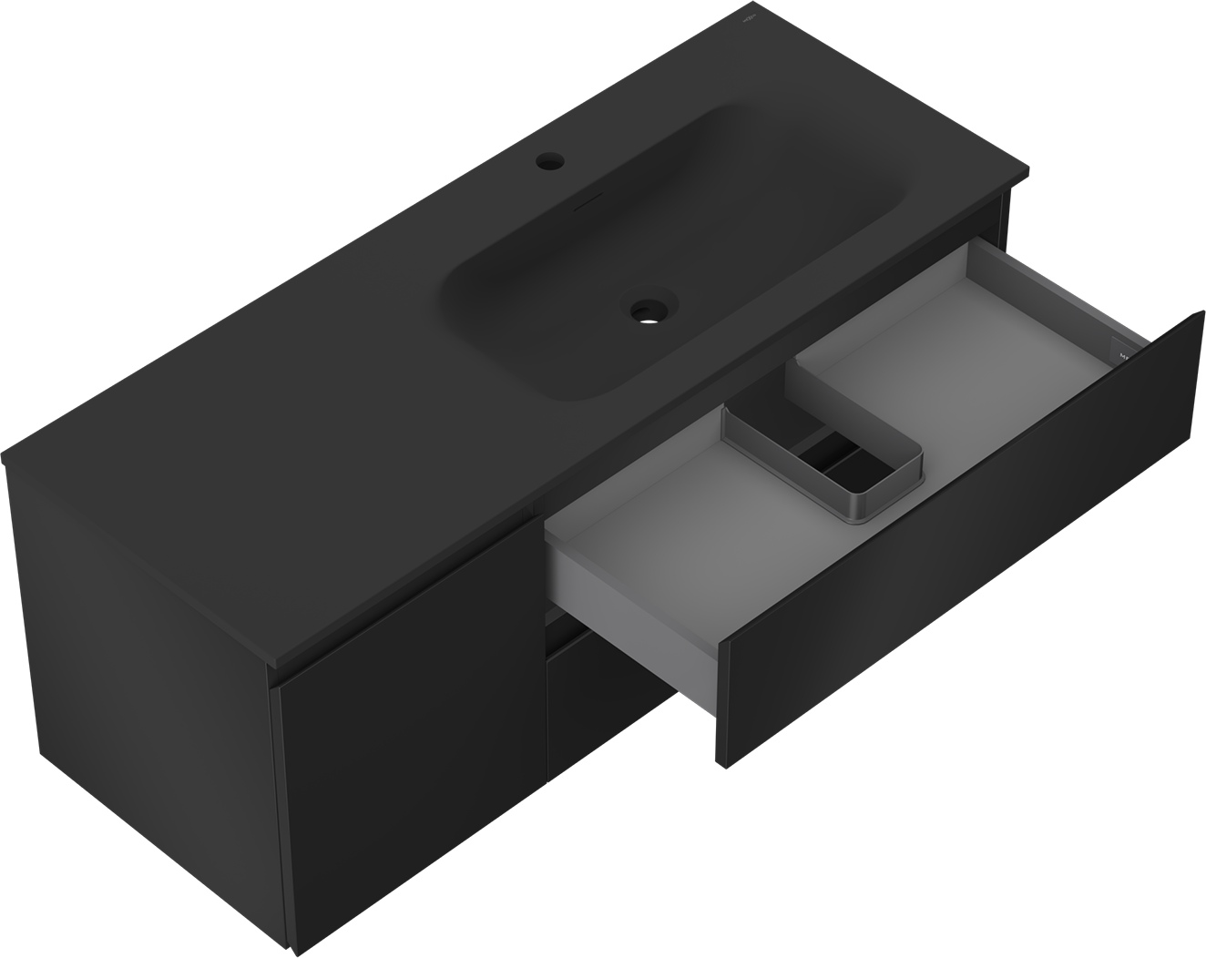 Výřez v zásuvce je navržen tak, aby pojmul sifon, který je nezbytný v instalacích umyvadlových. Díky tomu může být nábytek plně funkčně namontován, aniž by bylo nutné vzdát se prostoru v zásuvce ve prospěch instalace.