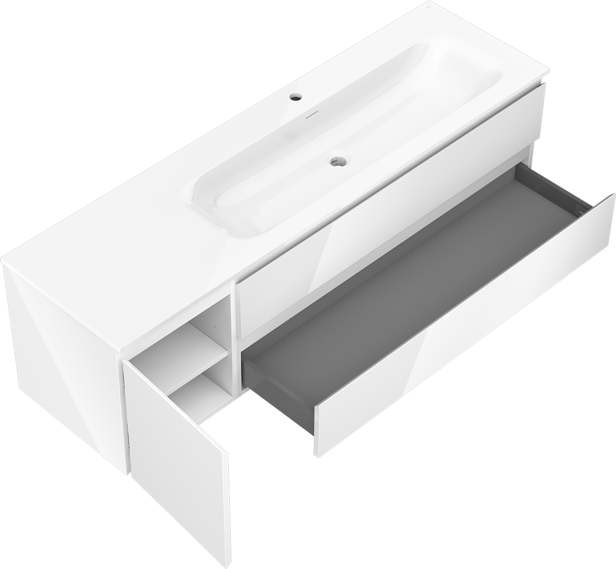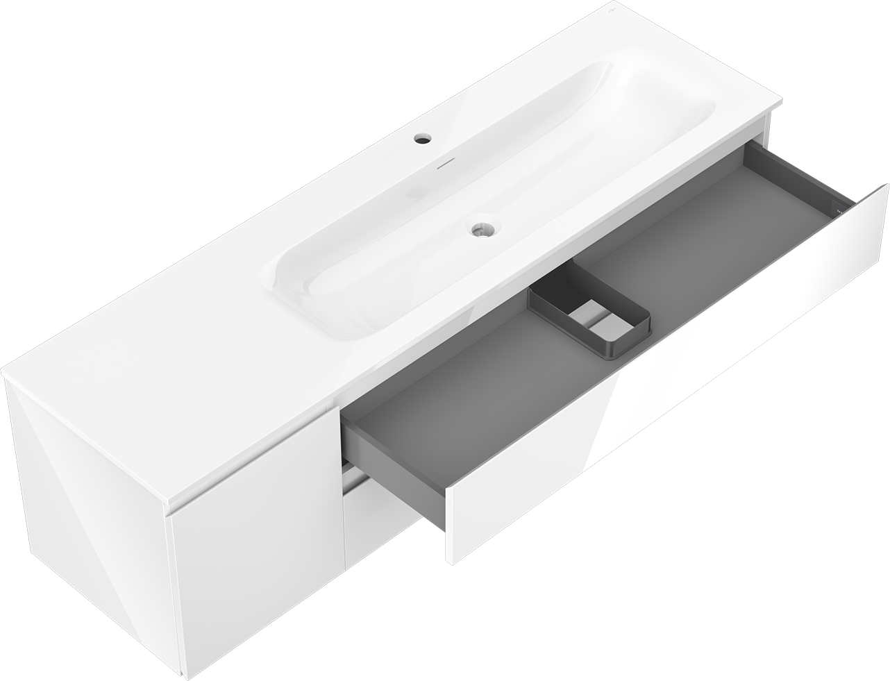 Výřez v zásuvce je navržen tak, aby pojmul sifon, který je nezbytný v instalacích umyvadlových. Díky tomu může být nábytek plně funkčně namontován, aniž by bylo nutné vzdát se prostoru v zásuvce ve prospěch instalace.