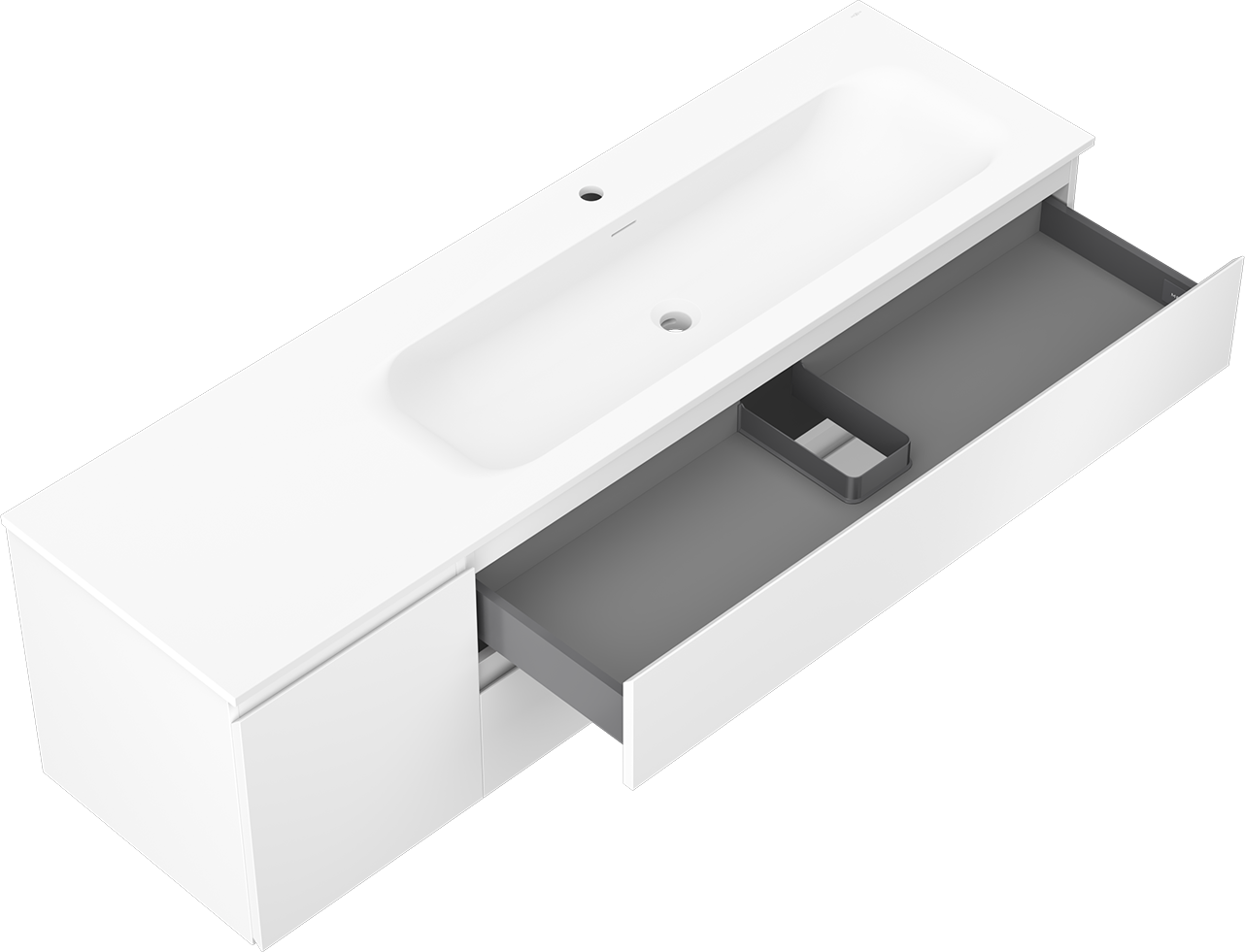 Výřez v zásuvce je navržen tak, aby pojmul sifon, který je nezbytný v instalacích umyvadlových. Díky tomu může být nábytek plně funkčně namontován, aniž by bylo nutné vzdát se prostoru v zásuvce ve prospěch instalace.