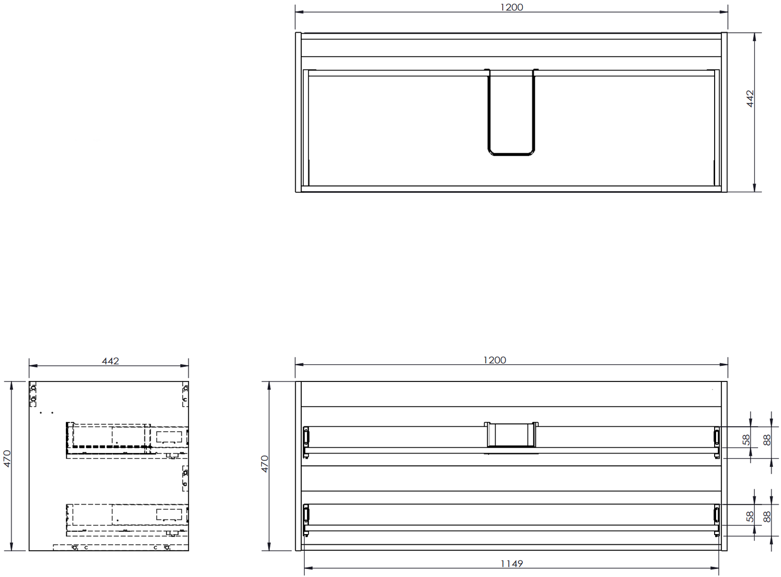 Výřez v zásuvce je navržen tak, aby pojmul sifon, který je nezbytný v instalacích umyvadlových. Díky tomu může být nábytek plně funkčně namontován, aniž by bylo nutné vzdát se prostoru v zásuvce ve prospěch instalace.