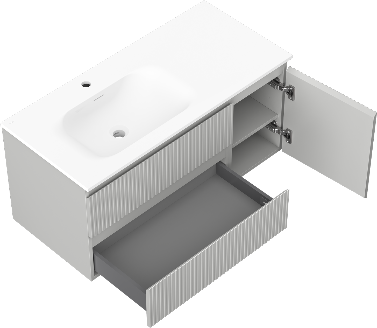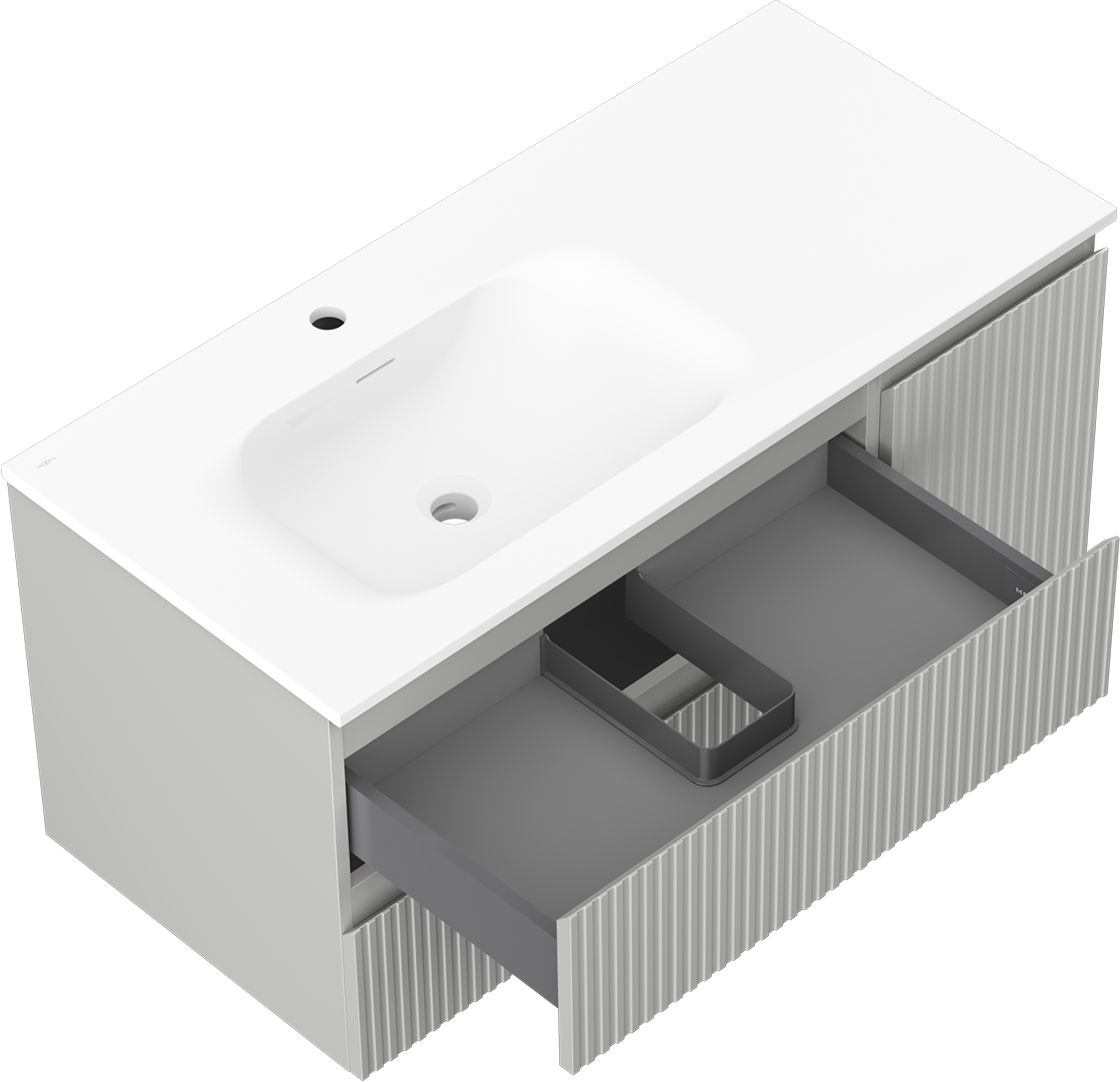 Výřez v zásuvce je navržen tak, aby pojmul sifon, který je nezbytný v instalacích umyvadlových. Díky tomu může být nábytek plně funkčně namontován, aniž by bylo nutné vzdát se prostoru v zásuvce ve prospěch instalace.