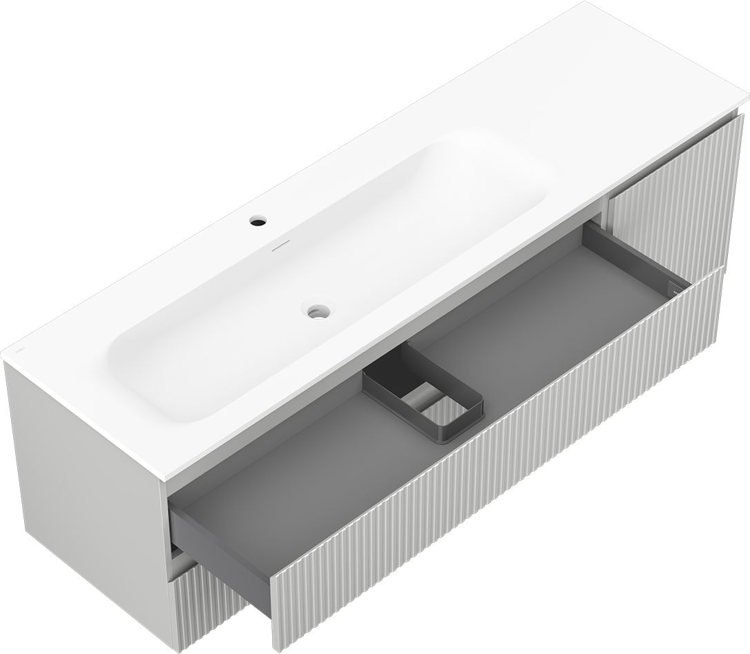 Výřez v zásuvce je navržen tak, aby pojmul sifon, který je nezbytný v instalacích umyvadlových. Díky tomu může být nábytek plně funkčně namontován, aniž by bylo nutné vzdát se prostoru v zásuvce ve prospěch instalace.