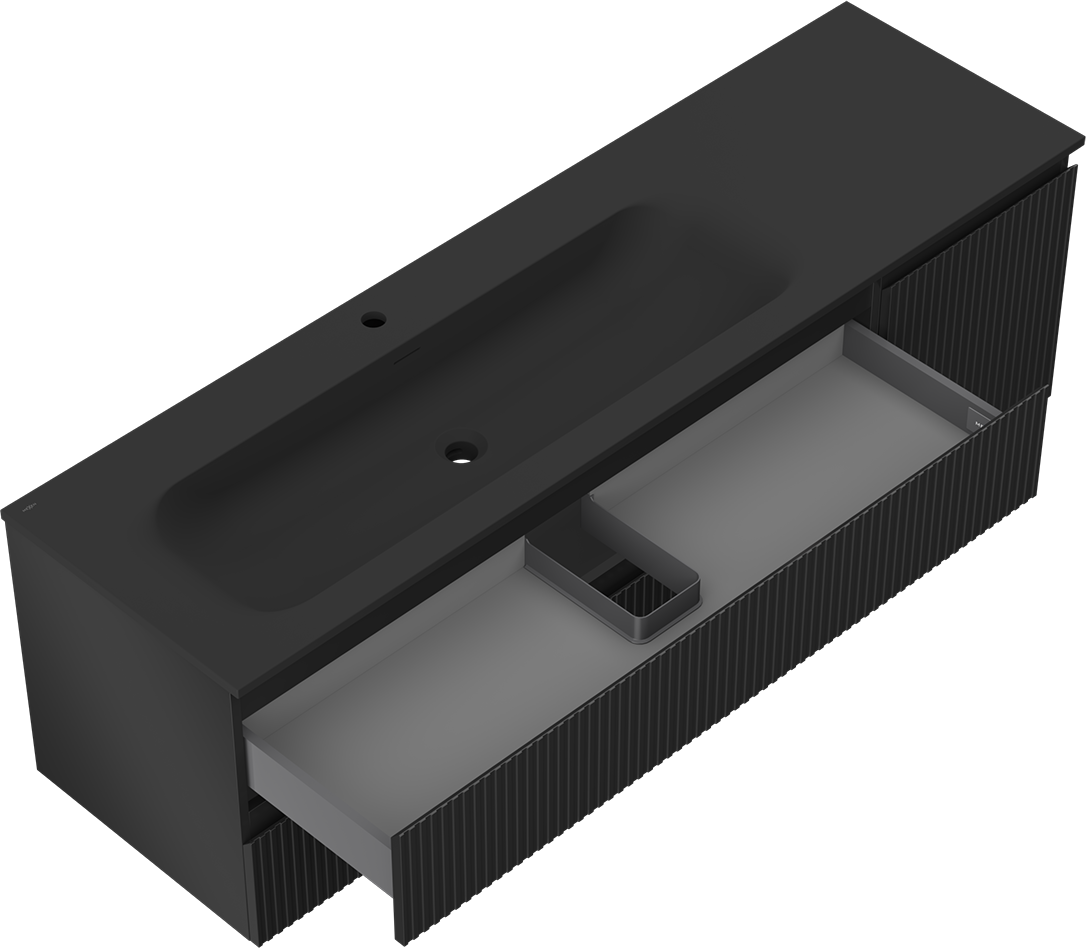 Výřez v zásuvce je navržen tak, aby pojmul sifon, který je nezbytný v instalacích umyvadlových. Díky tomu může být nábytek plně funkčně namontován, aniž by bylo nutné vzdát se prostoru v zásuvce ve prospěch instalace.
