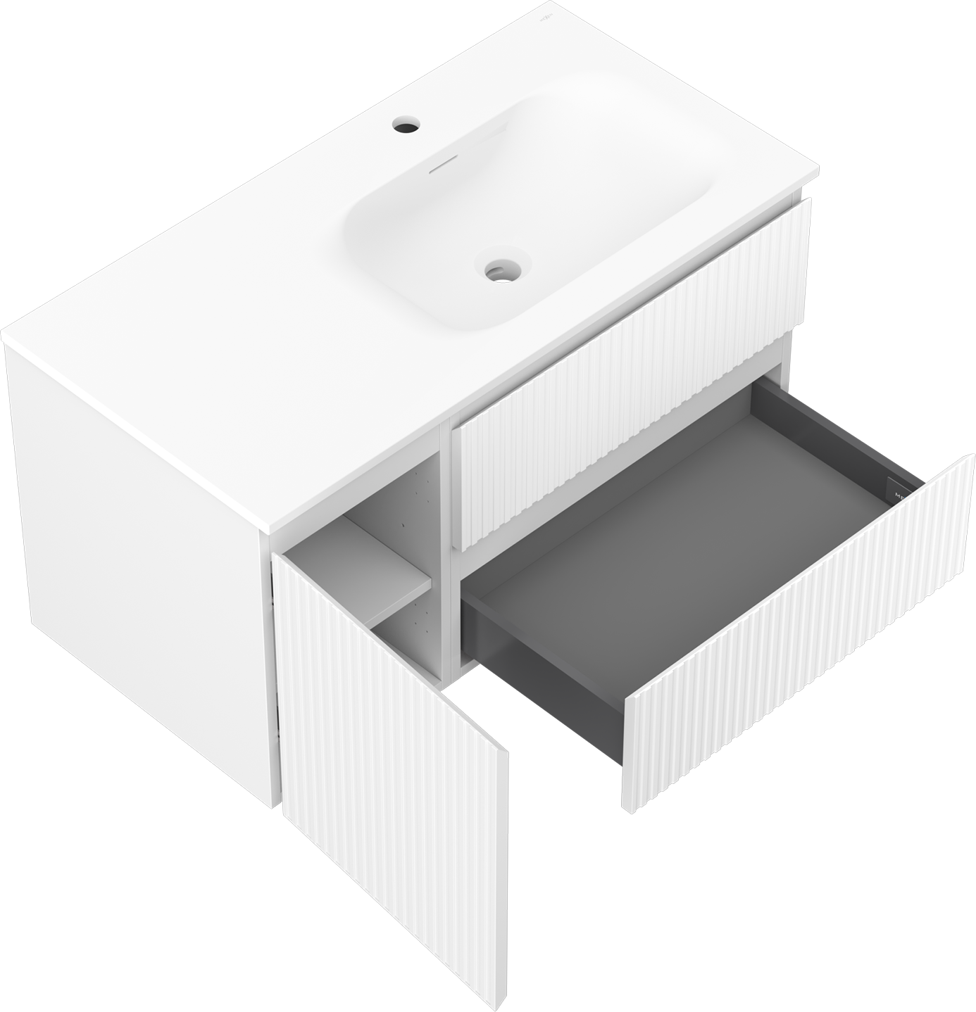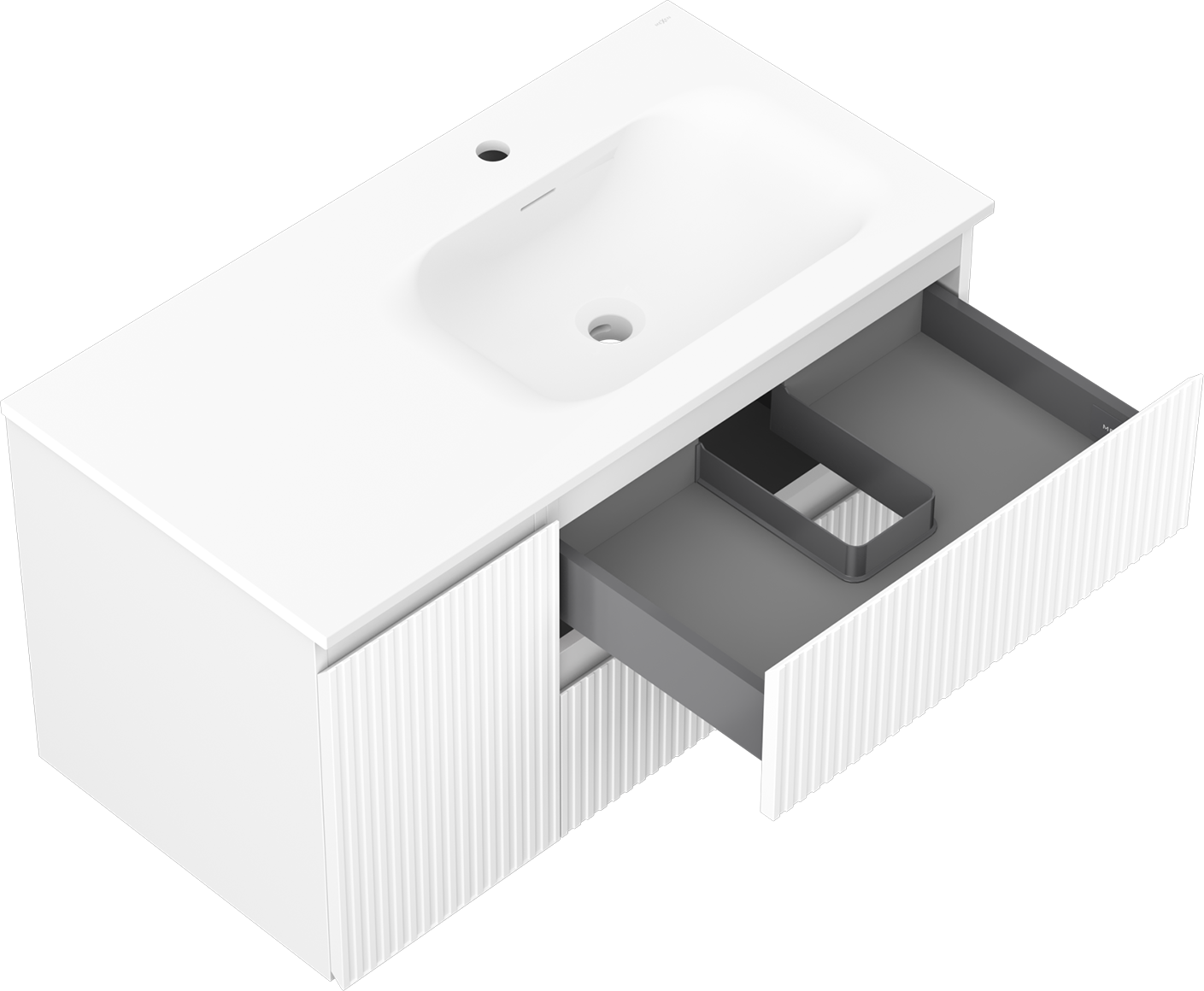 Výřez v zásuvce je navržen tak, aby pojmul sifon, který je nezbytný v instalacích umyvadlových. Díky tomu může být nábytek plně funkčně namontován, aniž by bylo nutné vzdát se prostoru v zásuvce ve prospěch instalace.