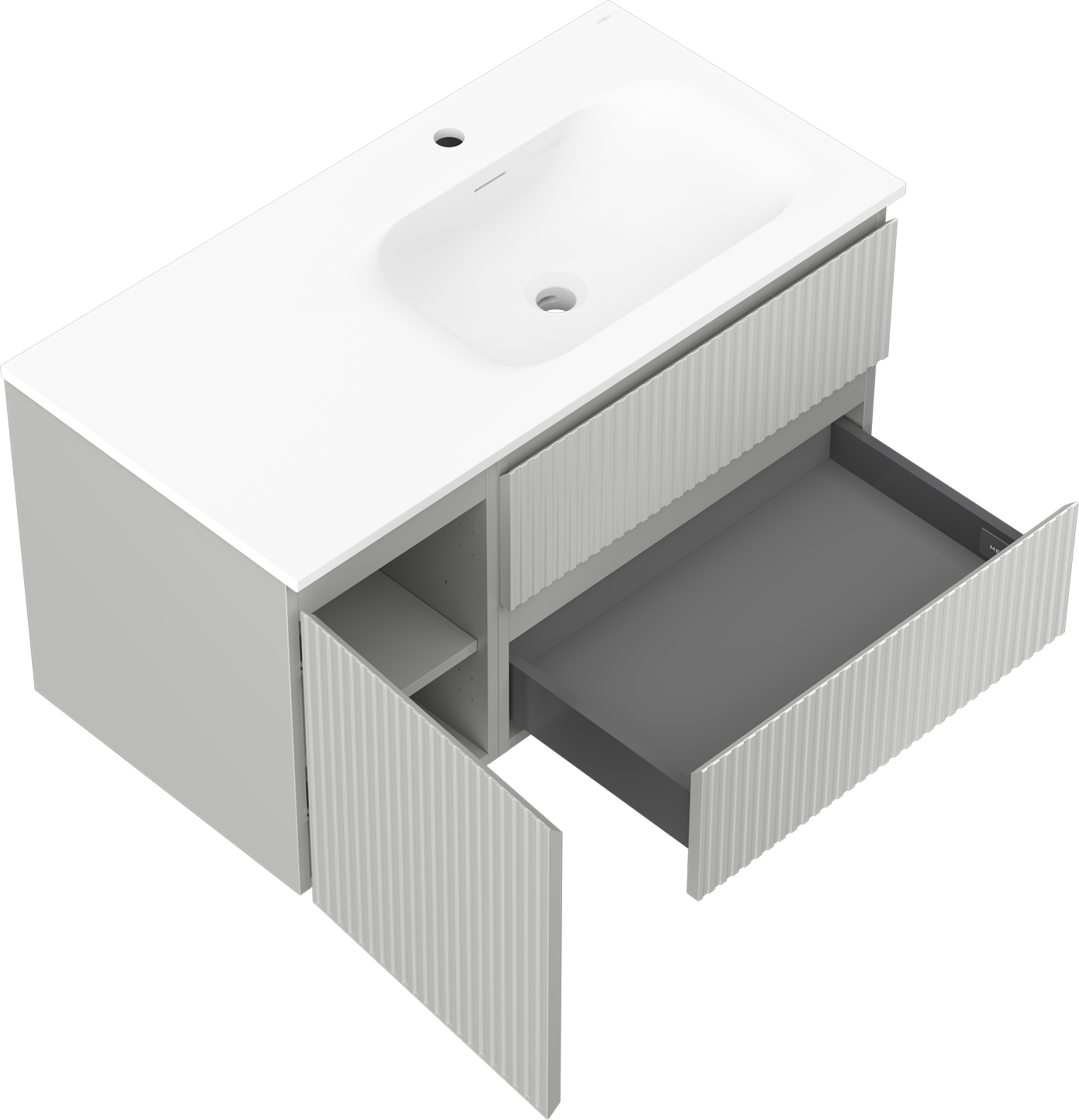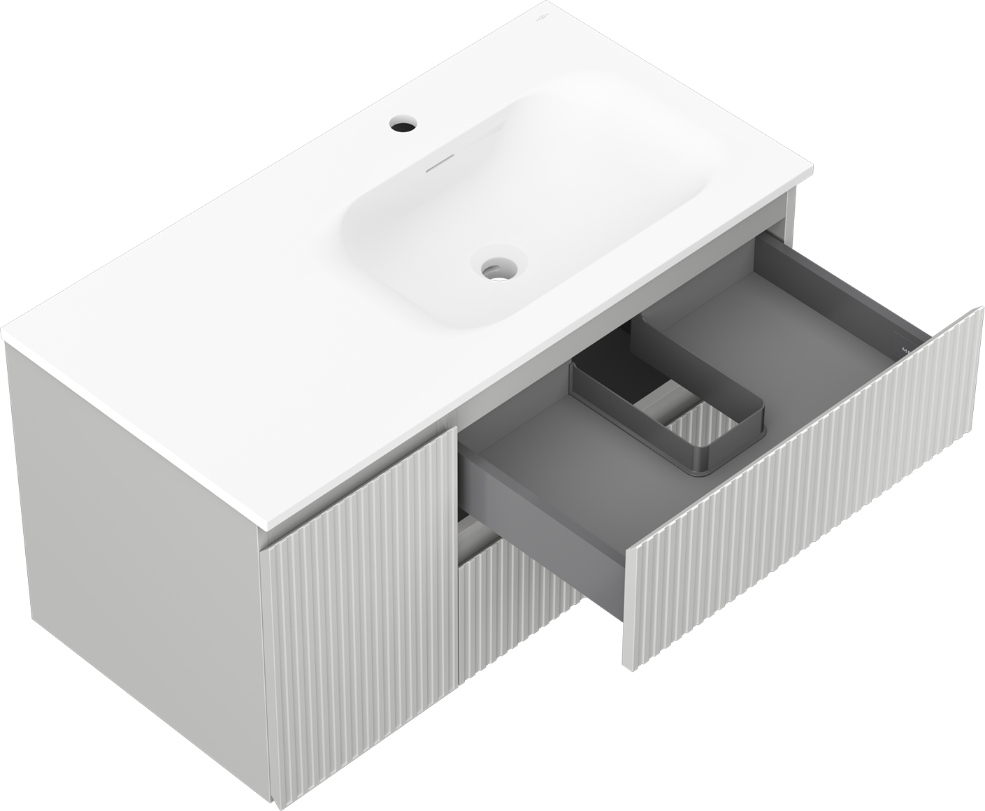 Výřez v zásuvce je navržen tak, aby pojmul sifon, který je nezbytný v instalacích umyvadlových. Díky tomu může být nábytek plně funkčně namontován, aniž by bylo nutné vzdát se prostoru v zásuvce ve prospěch instalace.