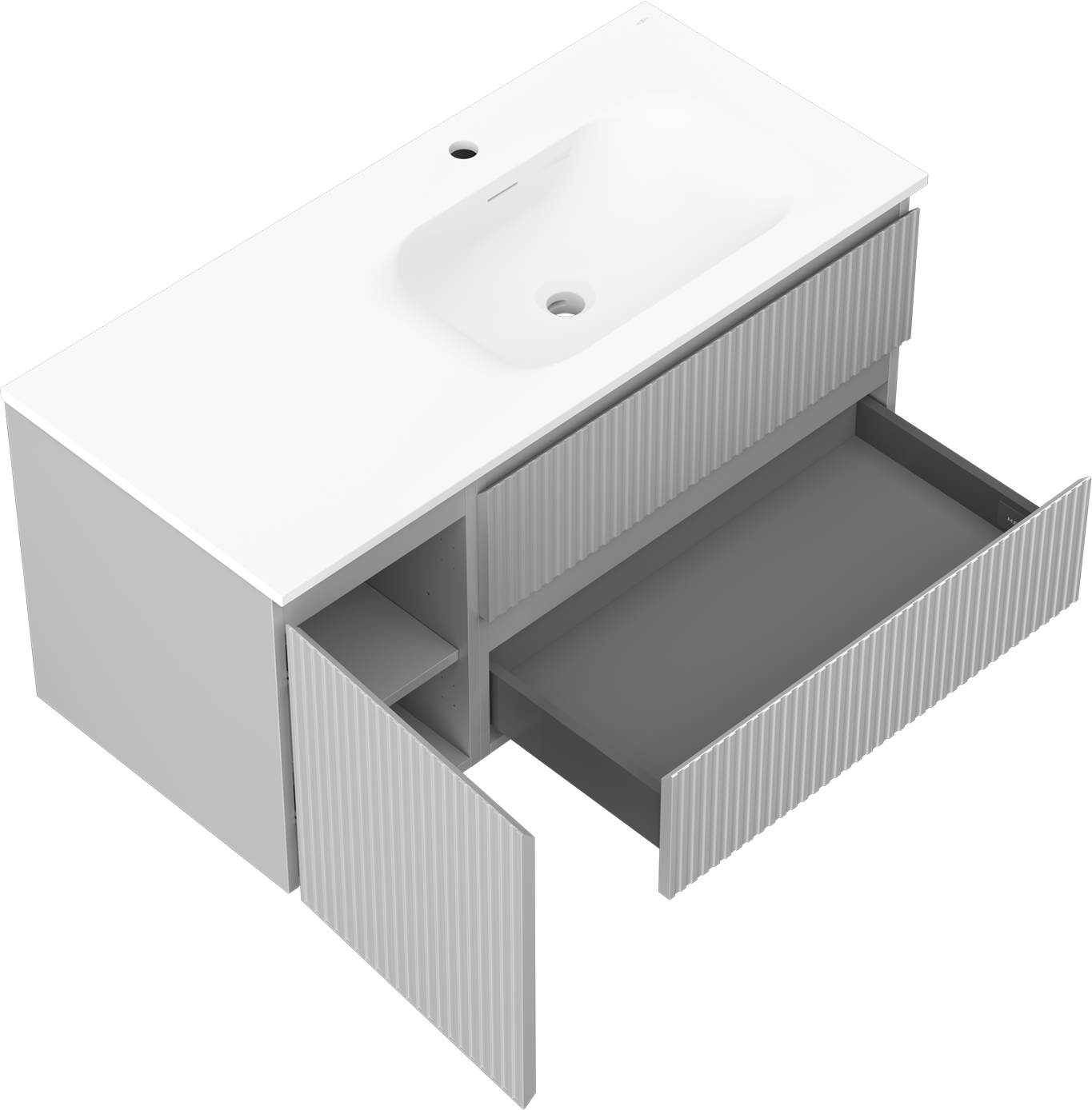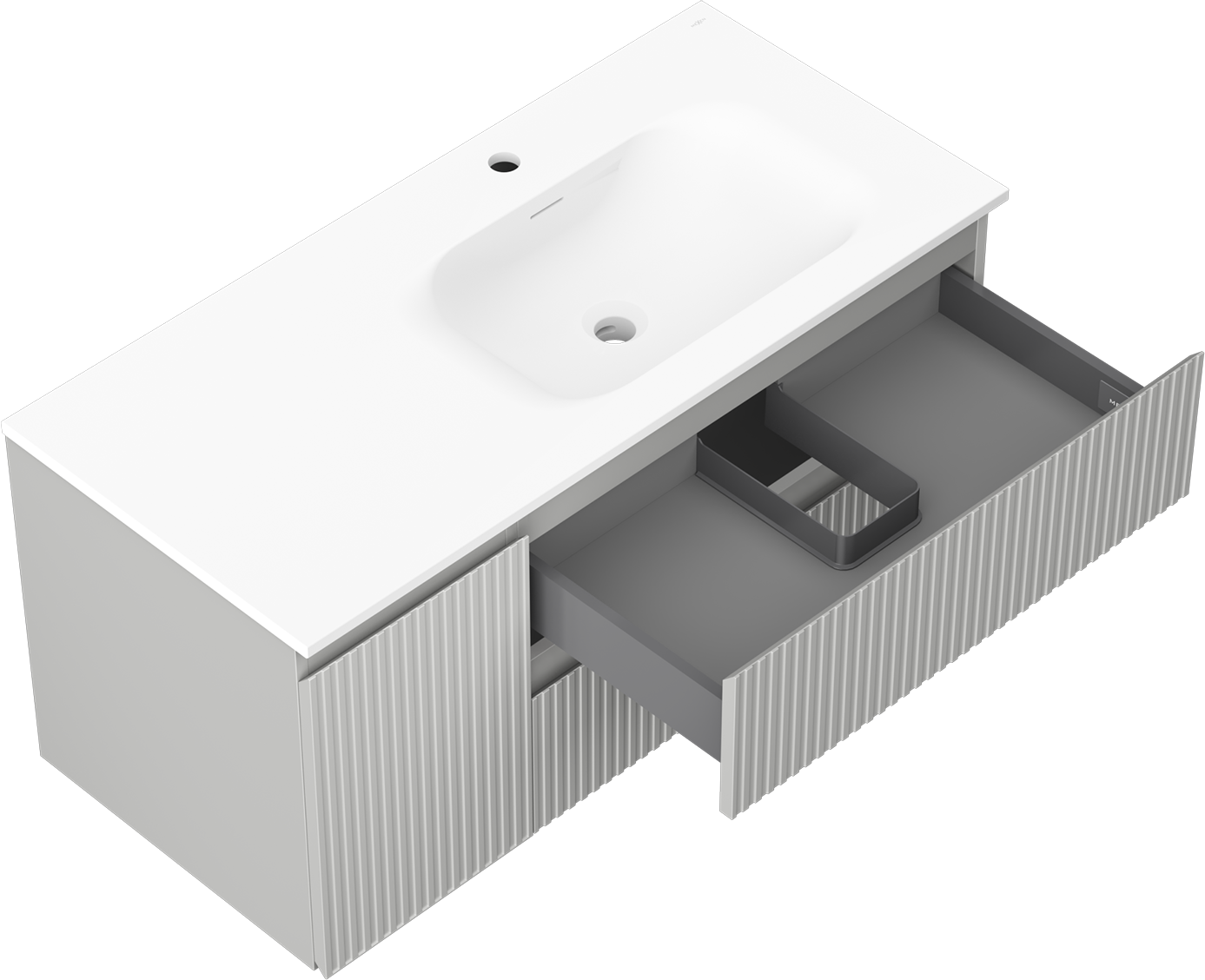 Výřez v zásuvce je navržen tak, aby pojmul sifon, který je nezbytný v instalacích umyvadlových. Díky tomu může být nábytek plně funkčně namontován, aniž by bylo nutné vzdát se prostoru v zásuvce ve prospěch instalace.