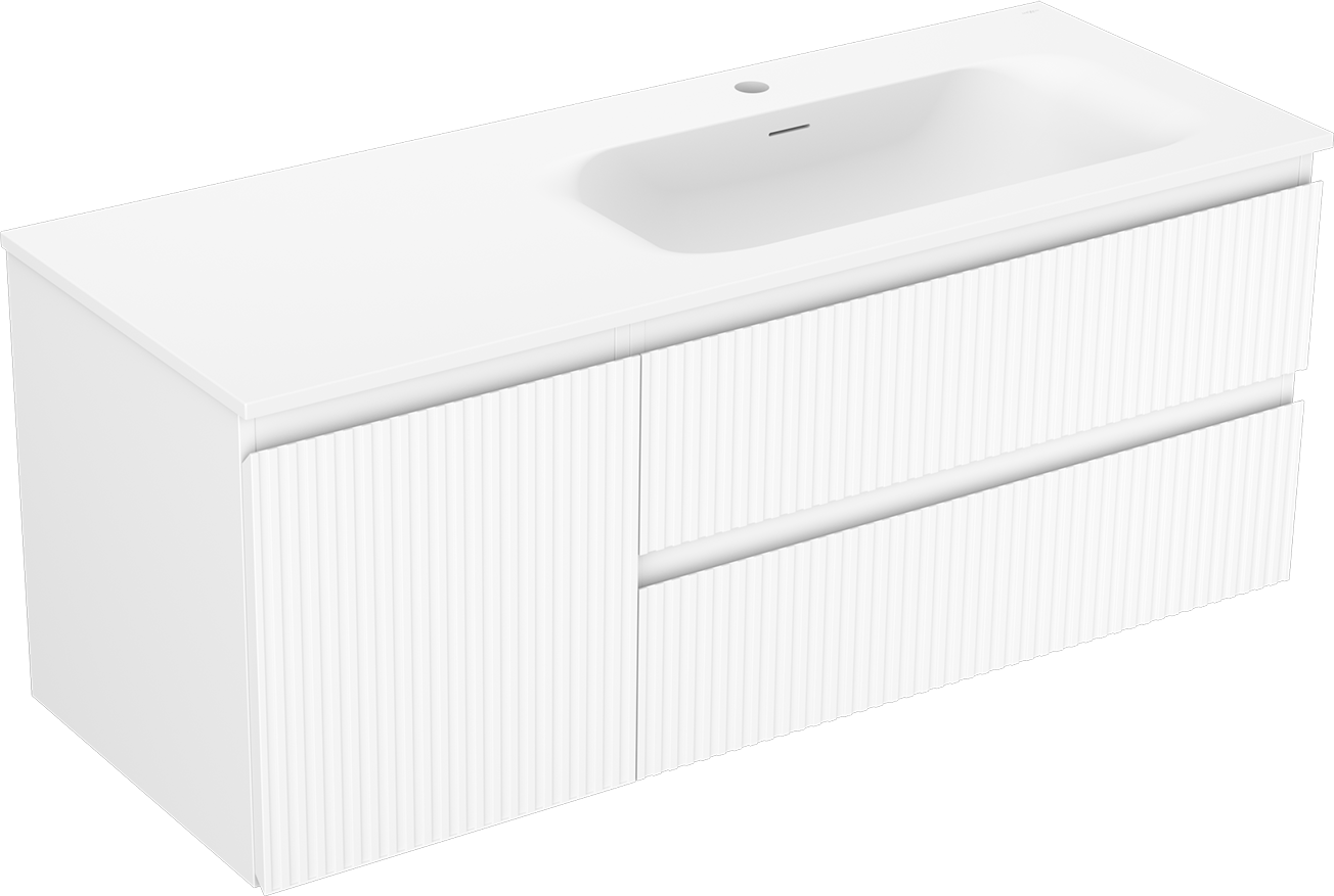 Výřez v zásuvce je navržen tak, aby pojmul sifon, který je nezbytný v instalacích umyvadlových. Díky tomu může být nábytek plně funkčně namontován, aniž by bylo nutné vzdát se prostoru v zásuvce ve prospěch instalace.