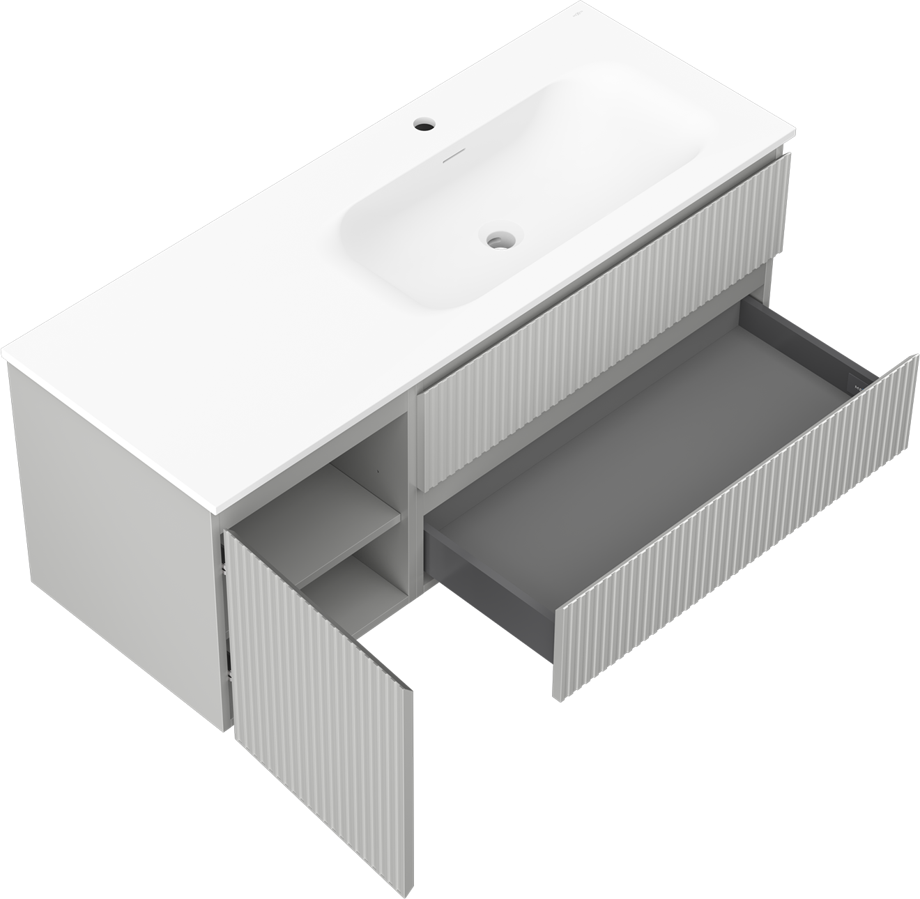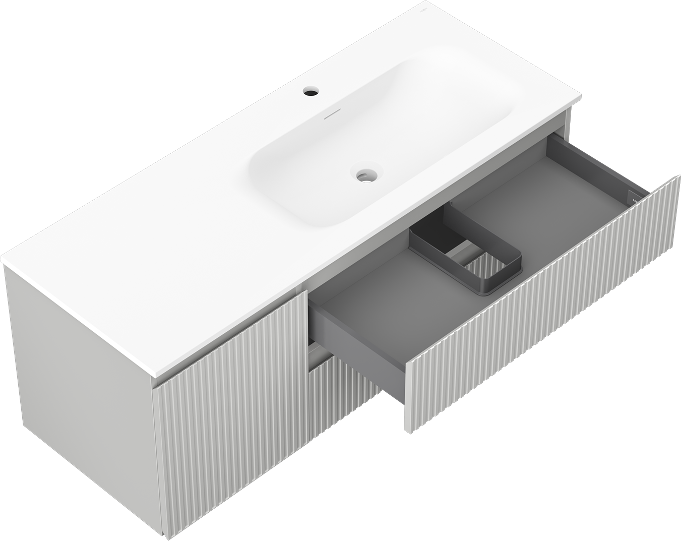 Výřez v zásuvce je navržen tak, aby pojmul sifon, který je nezbytný v instalacích umyvadlových. Díky tomu může být nábytek plně funkčně namontován, aniž by bylo nutné vzdát se prostoru v zásuvce ve prospěch instalace.