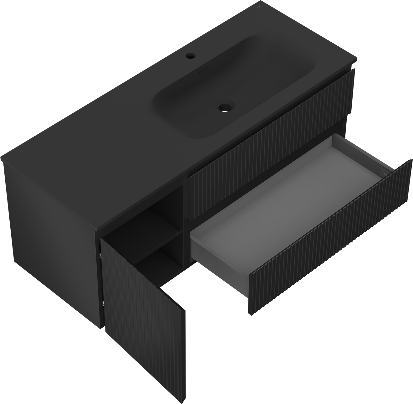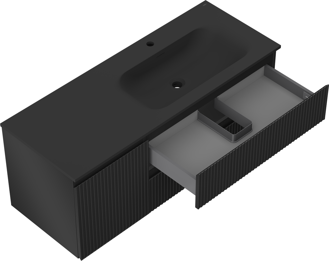 Výřez v zásuvce je navržen tak, aby pojmul sifon, který je nezbytný v instalacích umyvadlových. Díky tomu může být nábytek plně funkčně namontován, aniž by bylo nutné vzdát se prostoru v zásuvce ve prospěch instalace.