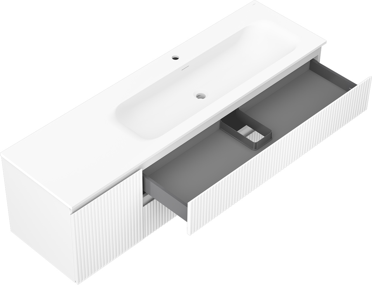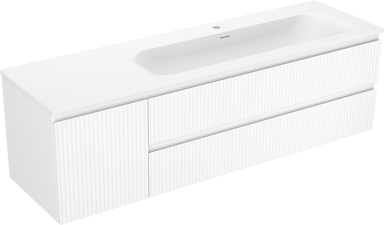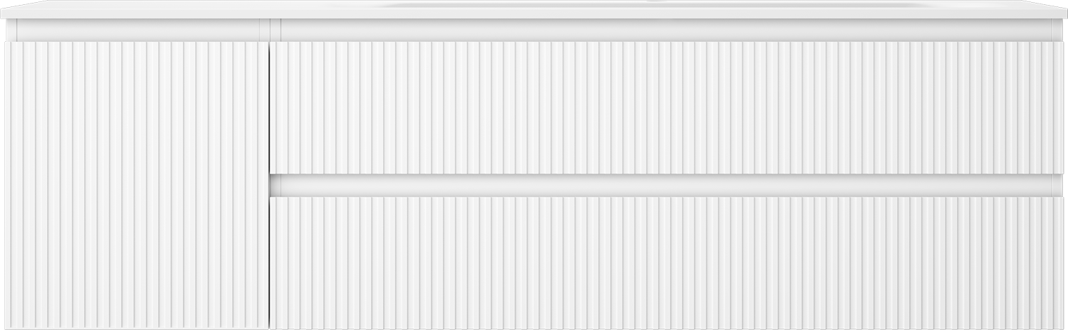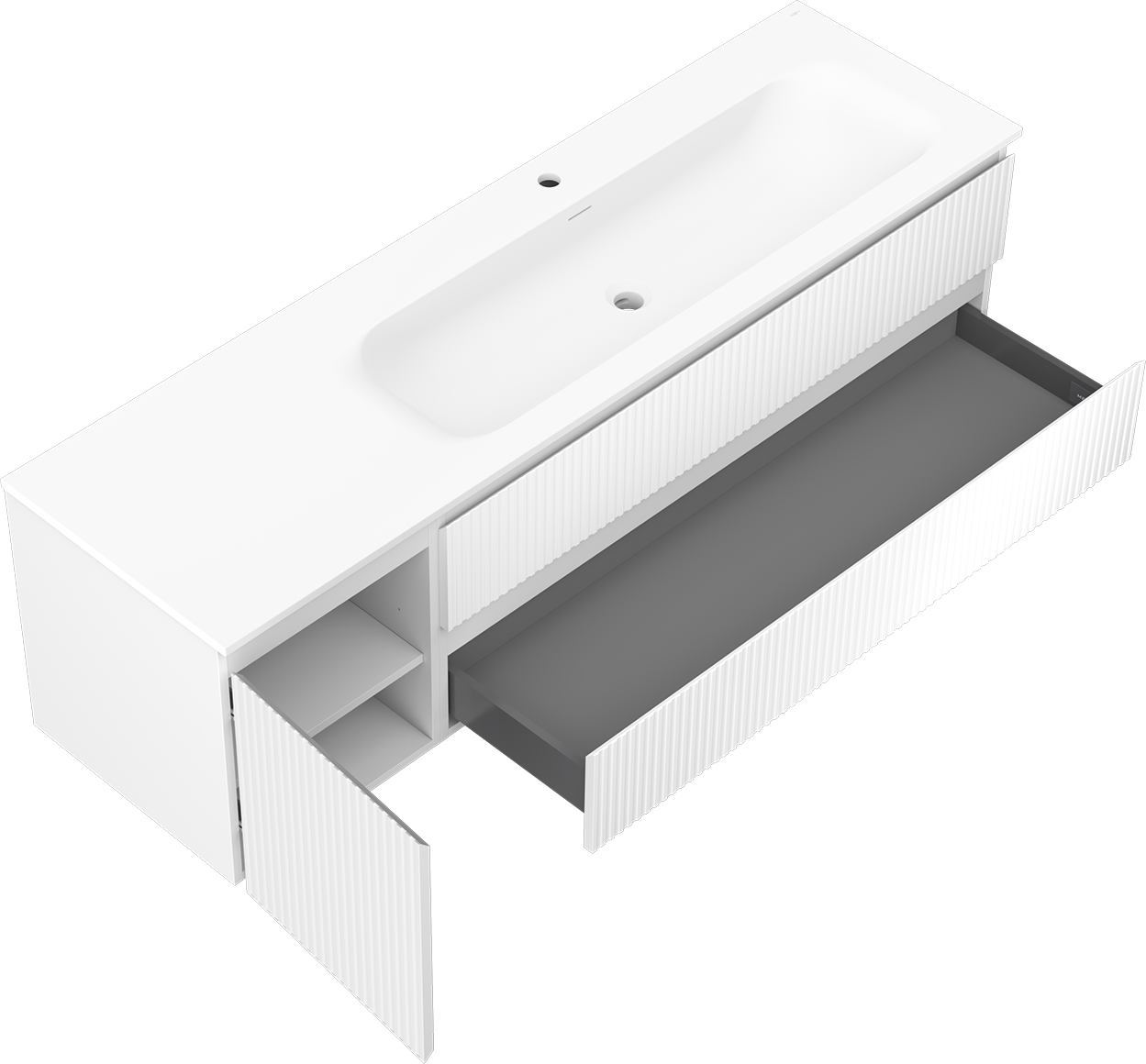 Mexen Rivel koupelnová skříňka 160 cm s umyvadlem Vela pravým, 2S, 1D, rýhovaná, bílá mat - 91A23-16047-3-BBFFF01-W23P01