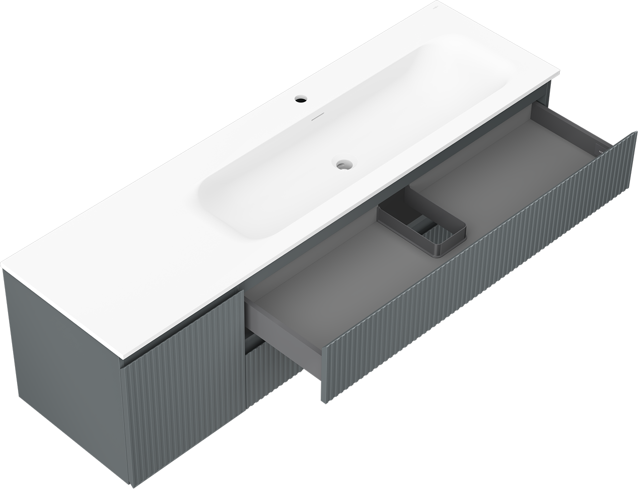 Výřez v zásuvce je navržen tak, aby pojmul sifon, který je nezbytný v instalacích umyvadlových. Díky tomu může být nábytek plně funkčně namontován, aniž by bylo nutné vzdát se prostoru v zásuvce ve prospěch instalace.
