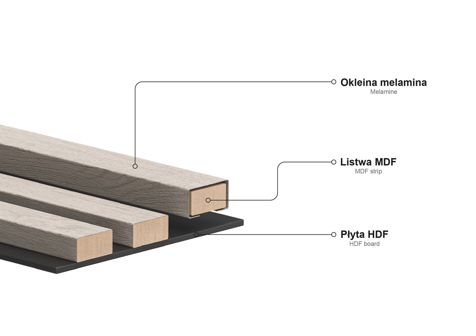 Materiál lamel: MDF lišta + melaminová dýha