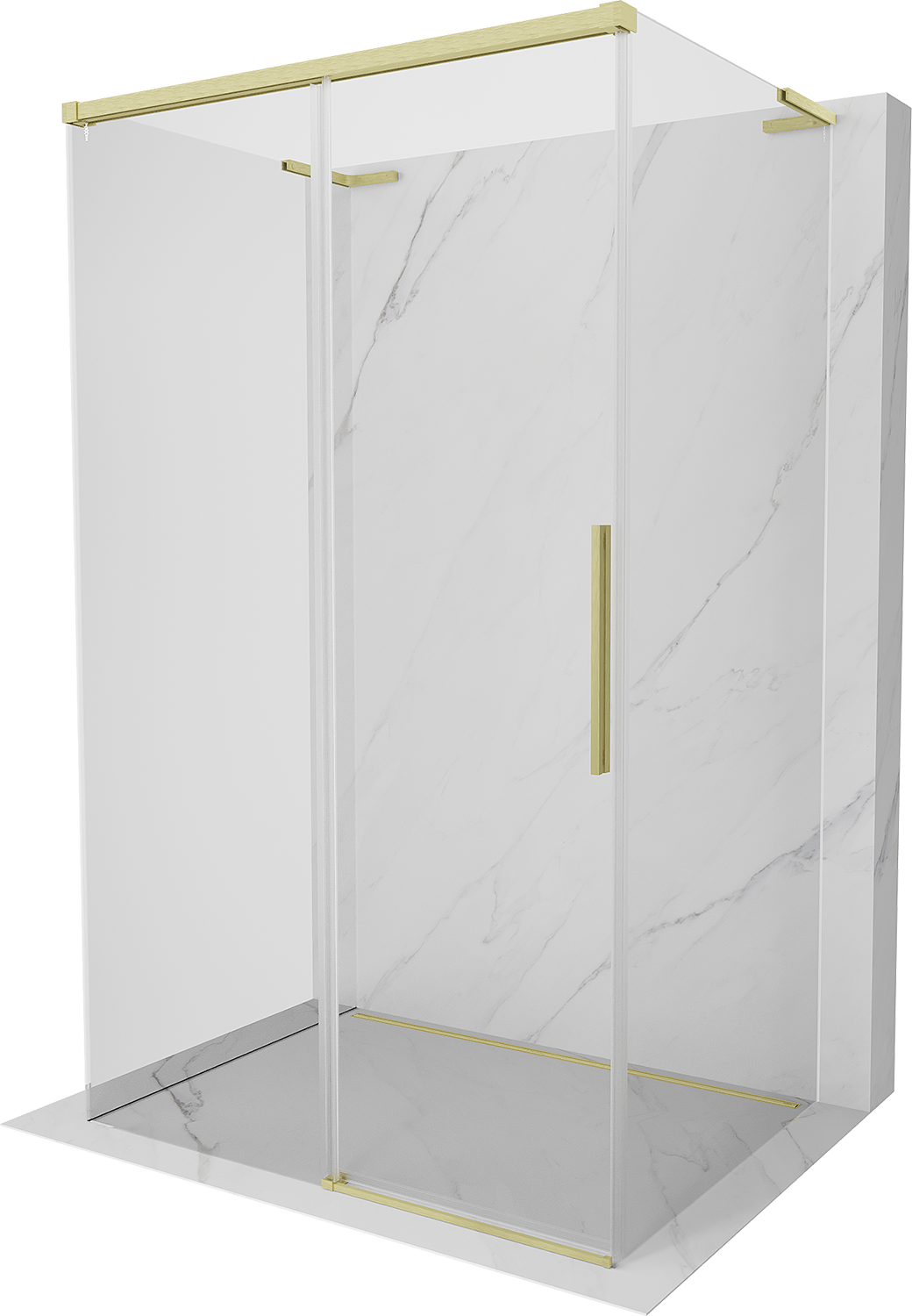 Mexen Rox-3S L sprchový kout 3-stěnný posuvný 140 x 75 cm, transparentní, kartáčovaná zlatá - 8C2L-140-075-55-00-3S