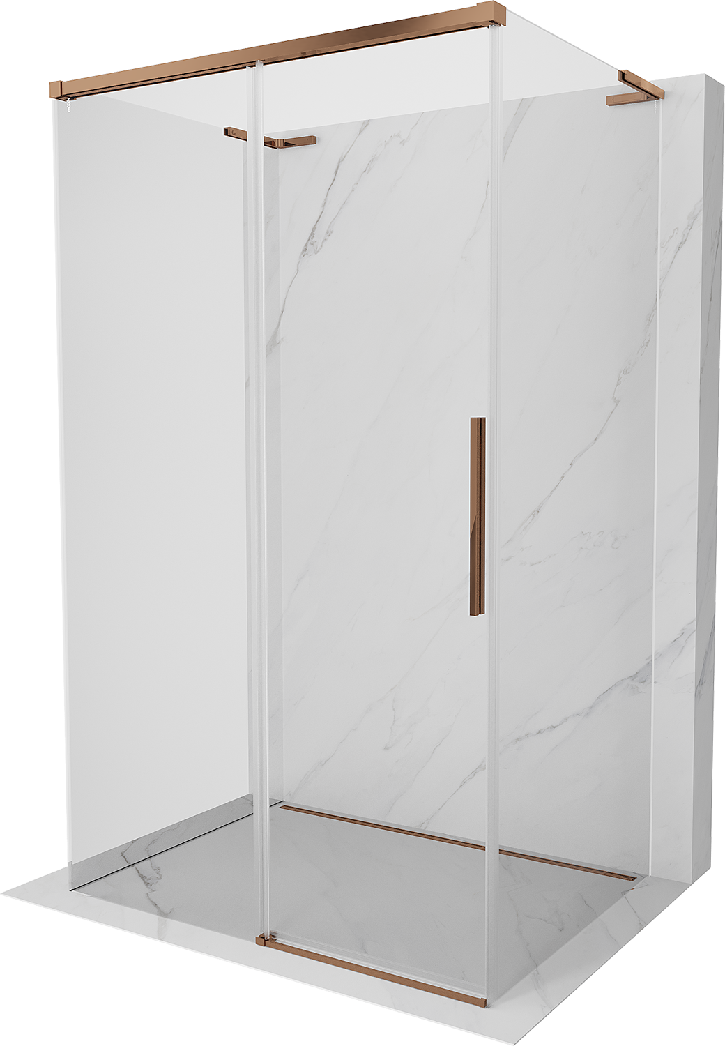Mexen Rox-3S L sprchový kout 3-stěnný posuvný 130 x 90 cm, transparentní, růžové zlato - 8C2L-130-090-60-00-3S