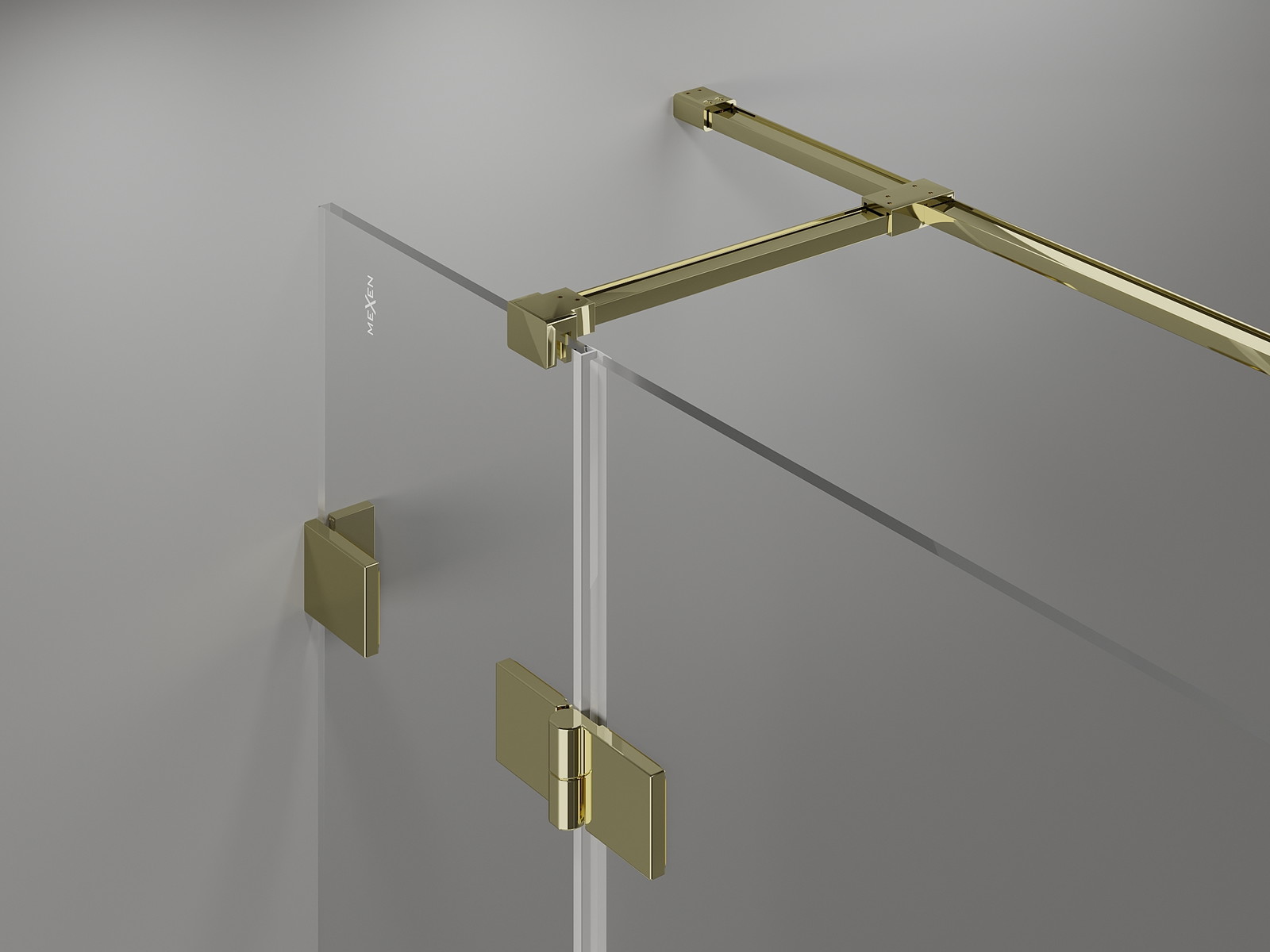 Mosazné úchyty a panty splývající s plochou skla