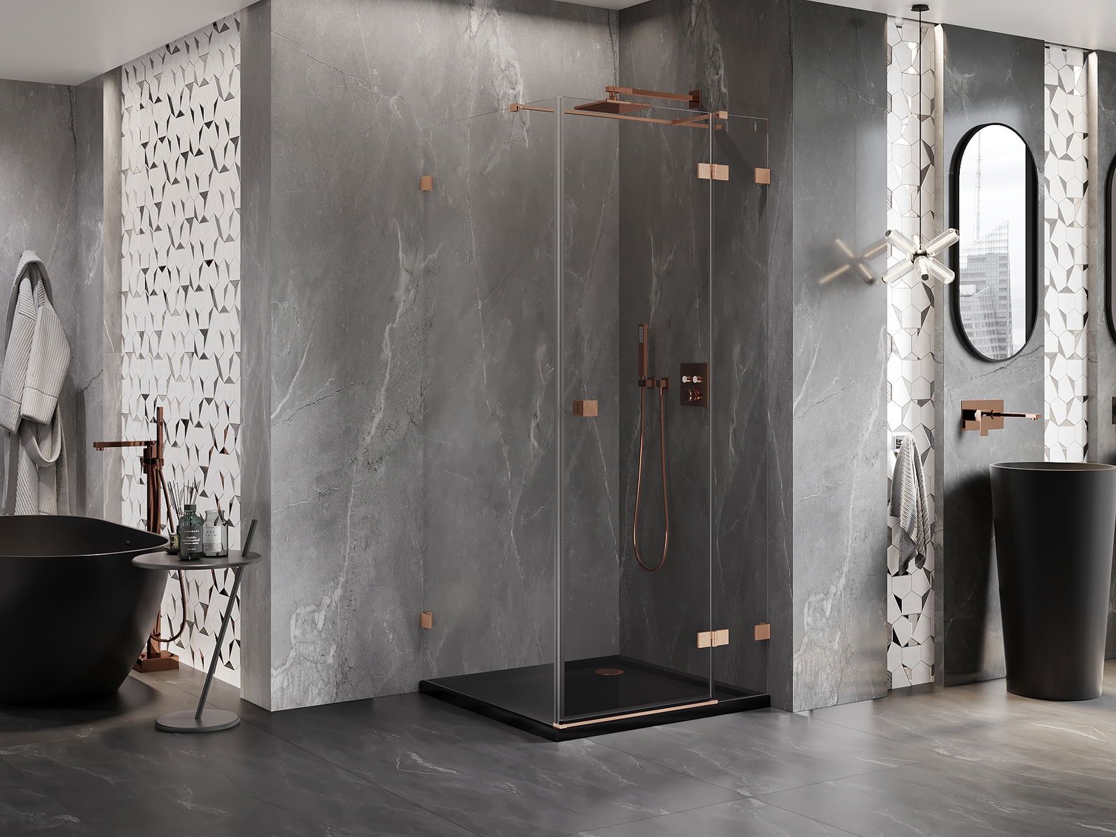 Spony a závěsy byly vyrobeny z velmi odolné mosazi a navíc vytvářejí zarovnanou plochu skla. Je to vynikající volba, která kombinuje eleganci, odolnost a moderní design. Díky těmto řešením získává sprcha na estetice a zároveň usnadňuje udržování čistoty.