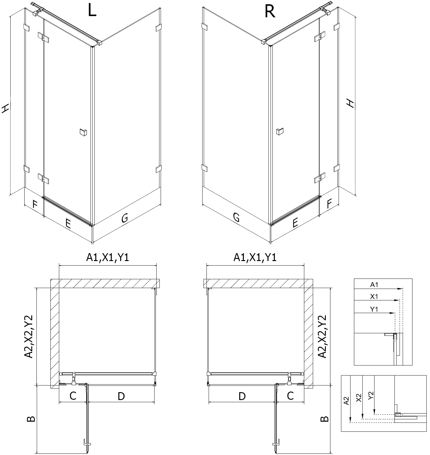 Sprchové kouty, dveře a stěny jsou standardně přizpůsobeny pro montáž na sprchové vaničky určitých rozměrů. Právě tyto rozměry jsou uvedeny v názvu nebo popisu výrobku. Je však třeba mít na paměti, že skutečné rozměry prvků se mohou mírně lišit od nominálních hodnot. V případě plánované instalace přímo na podlahu se doporučuje pečlivě zkontrolovat vnější rozměry a uspořádání prvků podle technického výkresu.