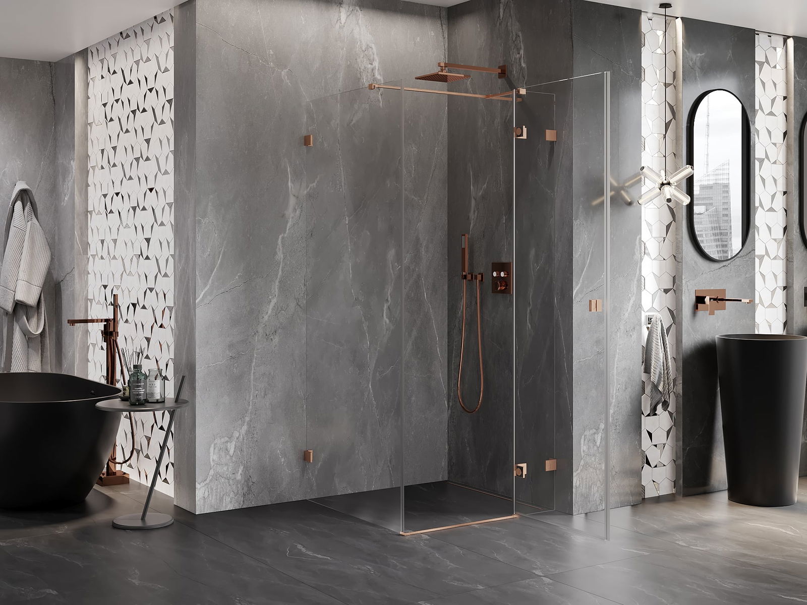 Spony a závěsy byly vyrobeny z velmi odolné mosazi a navíc vytvářejí zarovnanou plochu skla. Je to vynikající volba, která kombinuje eleganci, odolnost a moderní design. Díky těmto řešením získává sprcha na estetice a zároveň usnadňuje udržování čistoty.