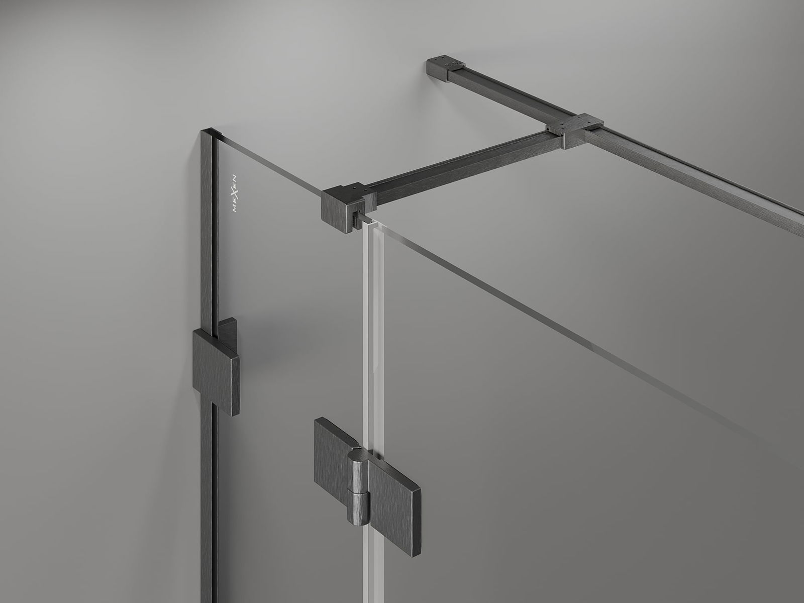 Spony a závěsy byly vyrobeny z velmi odolné mosazi a navíc vytvářejí zarovnanou plochu skla. Je to vynikající volba, která kombinuje eleganci, odolnost a moderní design. Díky těmto řešením získává sprcha na estetice a zároveň usnadňuje udržování čistoty.