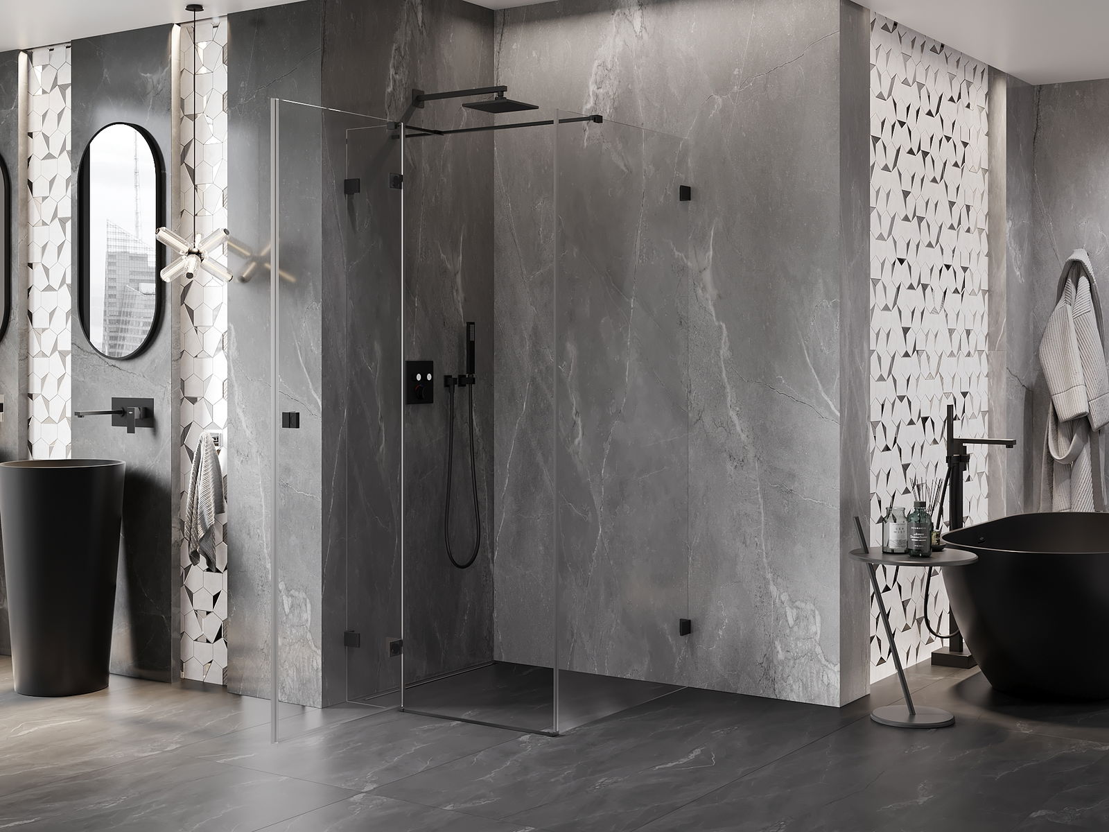 Praktická a pohodlná rukojeť je vyrobena z odolného a trvanlivého kovu. Moderní tvar ve spojení s povrchovou úpravou, která ladí s barvou profilů, dodává celku moderní a stylový vzhled, zdůrazňující estetiku každé koupelny.