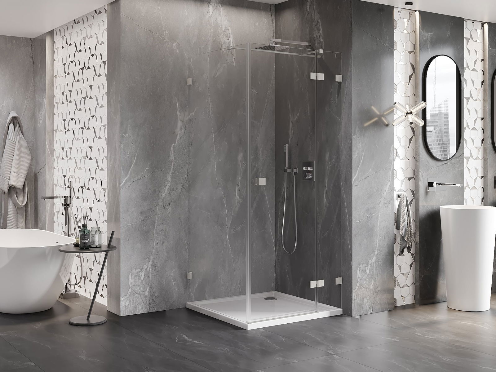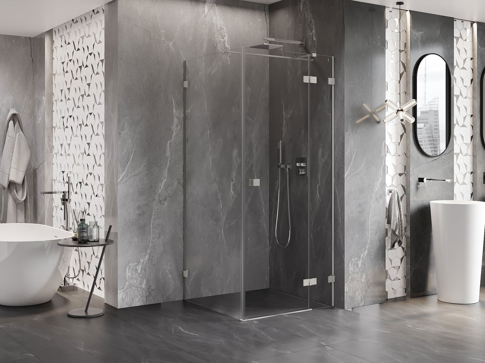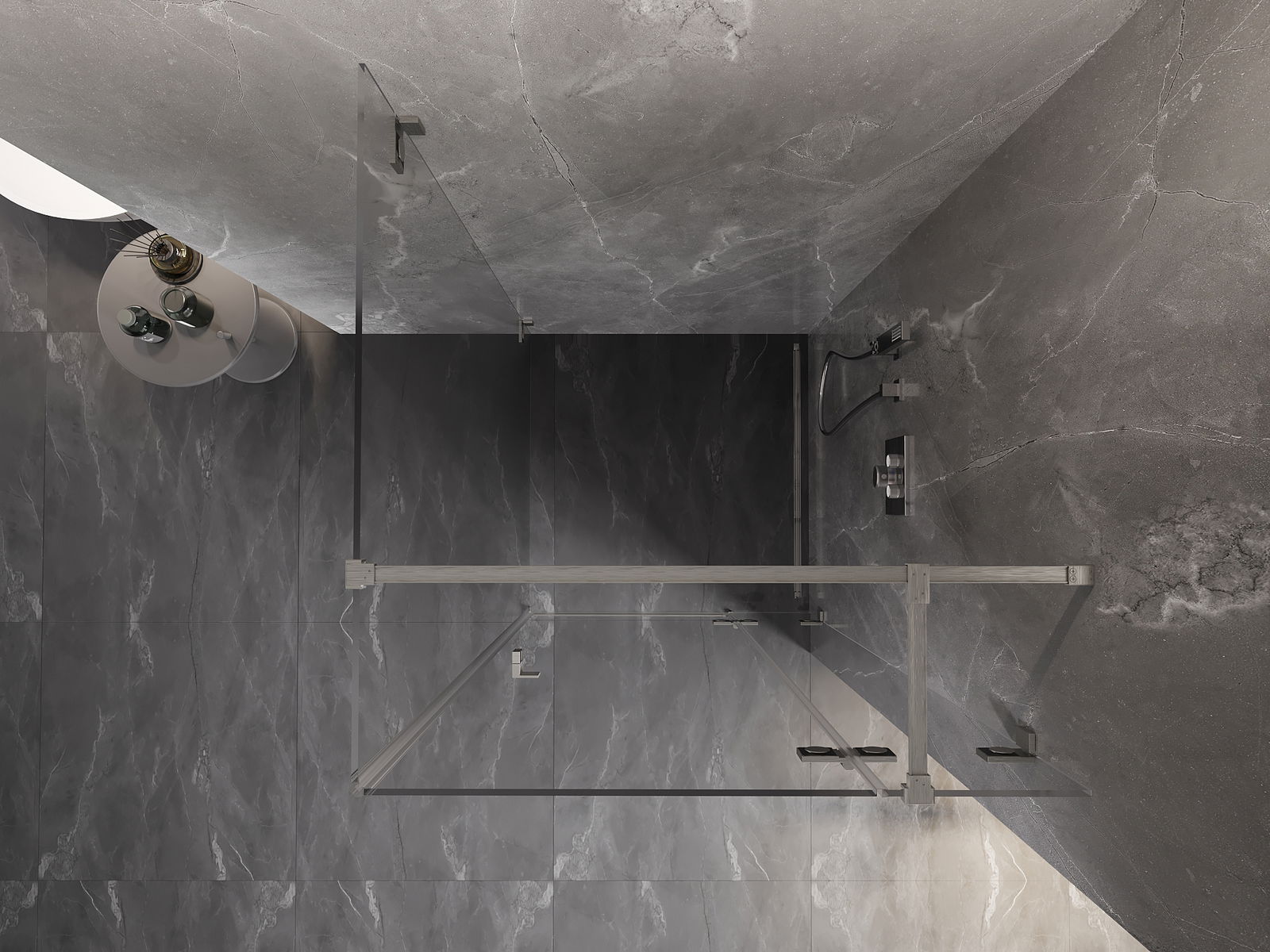 Praktická a pohodlná rukojeť je vyrobena z odolného a trvanlivého kovu. Moderní tvar ve spojení s povrchovou úpravou, která ladí s barvou profilů, dodává celku moderní a stylový vzhled, zdůrazňující estetiku každé koupelny.