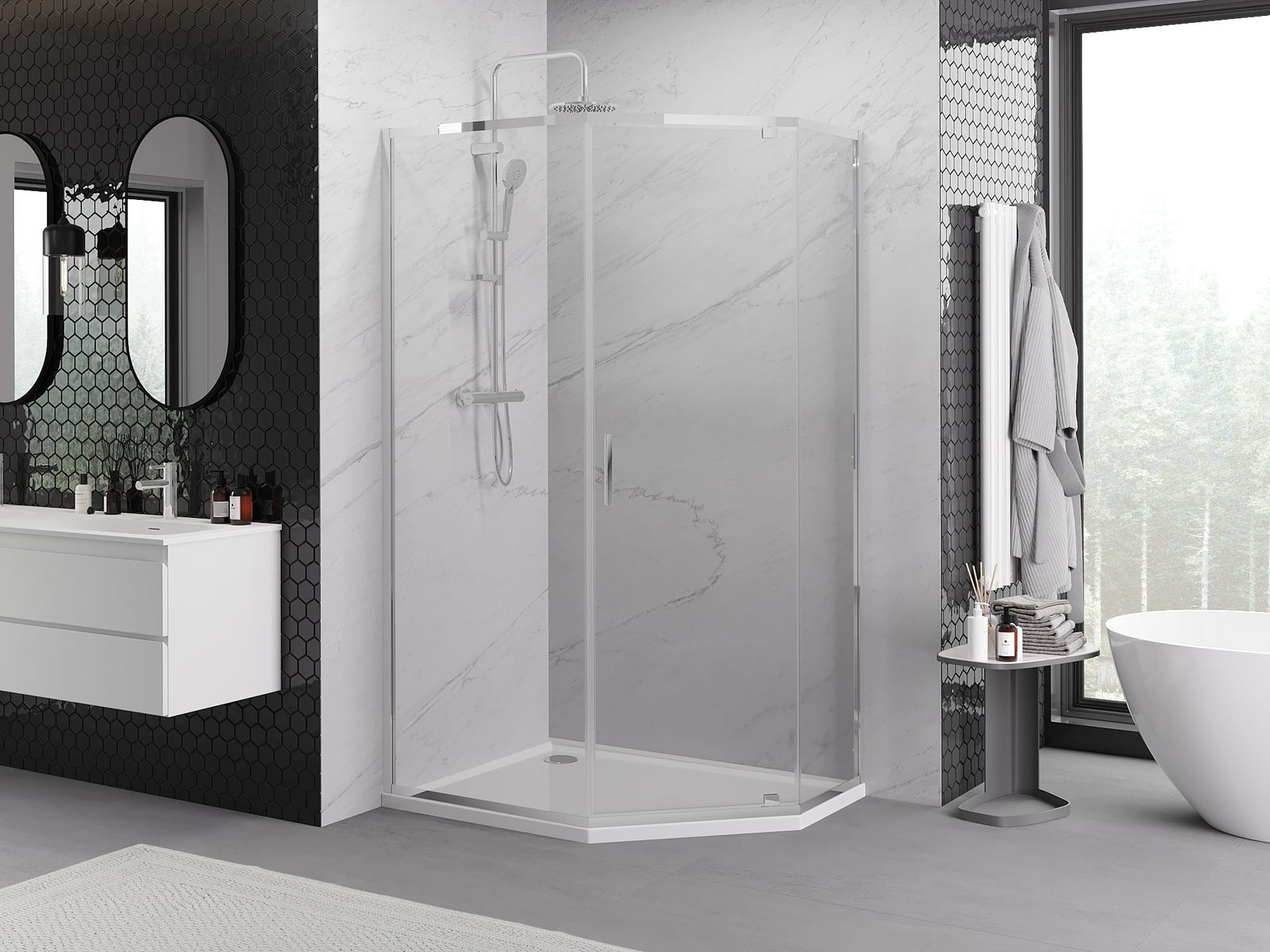 Mexen Exo pětiúhelníková sprchová kabina skládací 90 x 80 cm, transparentní, chrom - 812-090-080-01-00