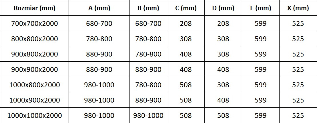 Sprchové kouty, dveře a stěny jsou standardně přizpůsobeny pro montáž na sprchové vaničky určitých rozměrů. Právě tyto rozměry jsou uvedeny v názvu nebo popisu výrobku. Je však třeba mít na paměti, že skutečné rozměry prvků se mohou mírně lišit od nominálních hodnot. V případě plánované instalace přímo na podlahu se doporučuje pečlivě zkontrolovat vnější rozměry a uspořádání prvků podle technického výkresu.
