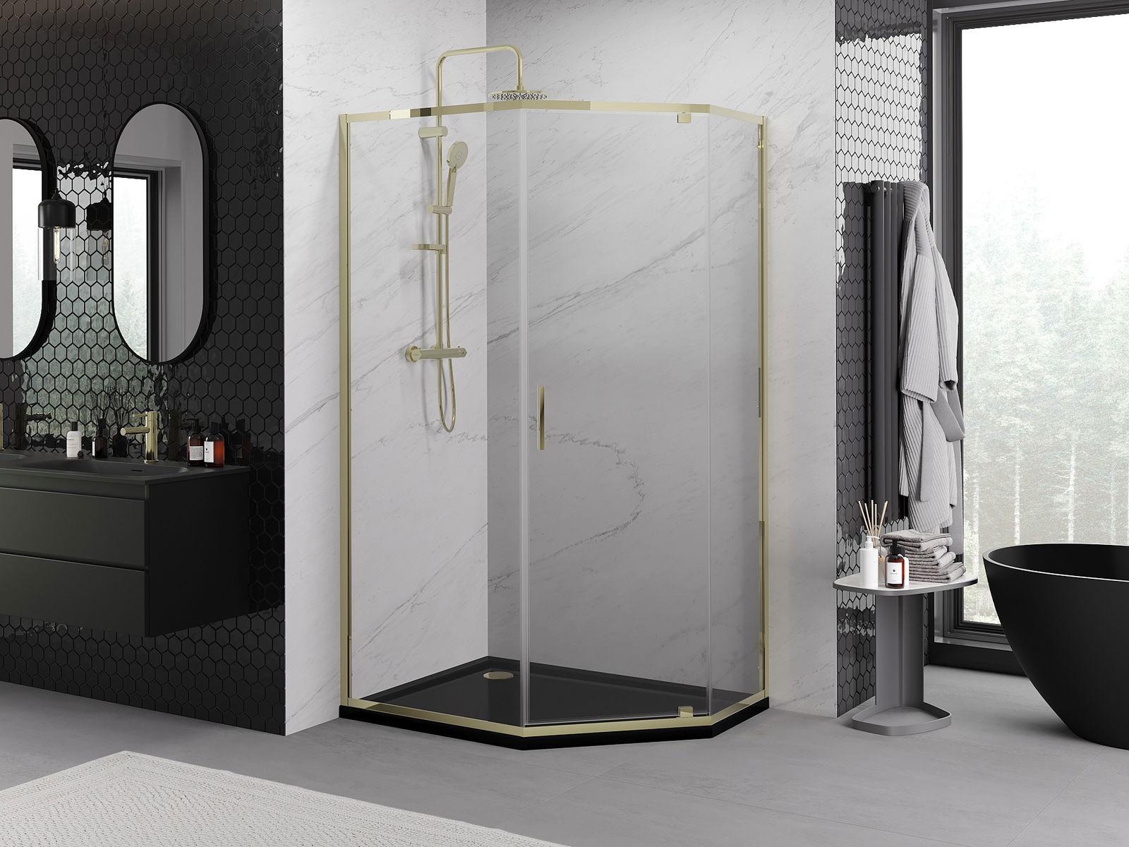 Mexen Exo pentagonální sprchový kout výklopný 90 x 80 cm, transparentní, zlatý - 812-090-080-50-00