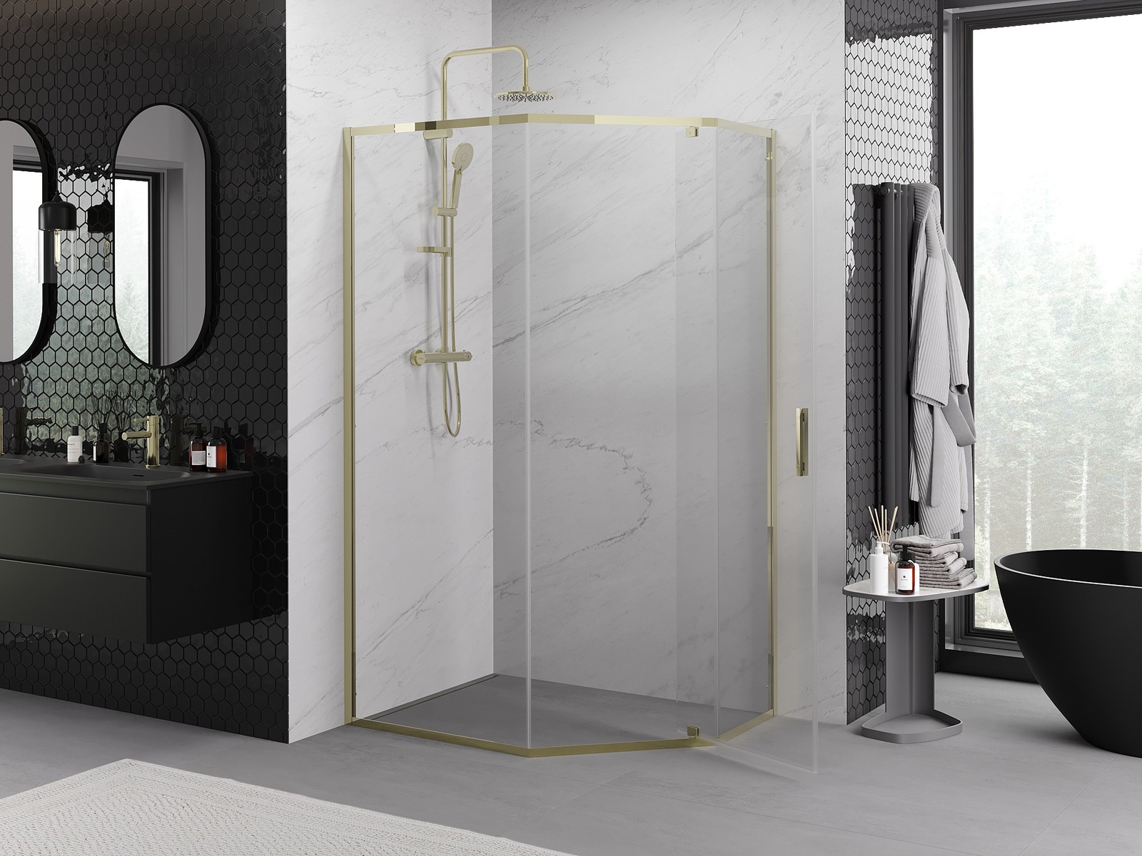 Praktická a pohodlná rukojeť je vyrobena z odolného a trvanlivého kovu. Moderní tvar ve spojení s povrchovou úpravou, která ladí s barvou profilů, dodává celku moderní a stylový vzhled, zdůrazňující estetiku každé koupelny.