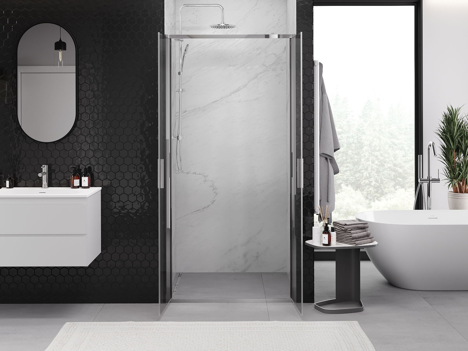 Díky použití univerzálního montážního systému mohou být sprchové dveře namontovány na pravé nebo levé straně, podle potřeby. Díky tomu můžete snadno navrhnout sprchu přizpůsobenou prostoru koupelny.
