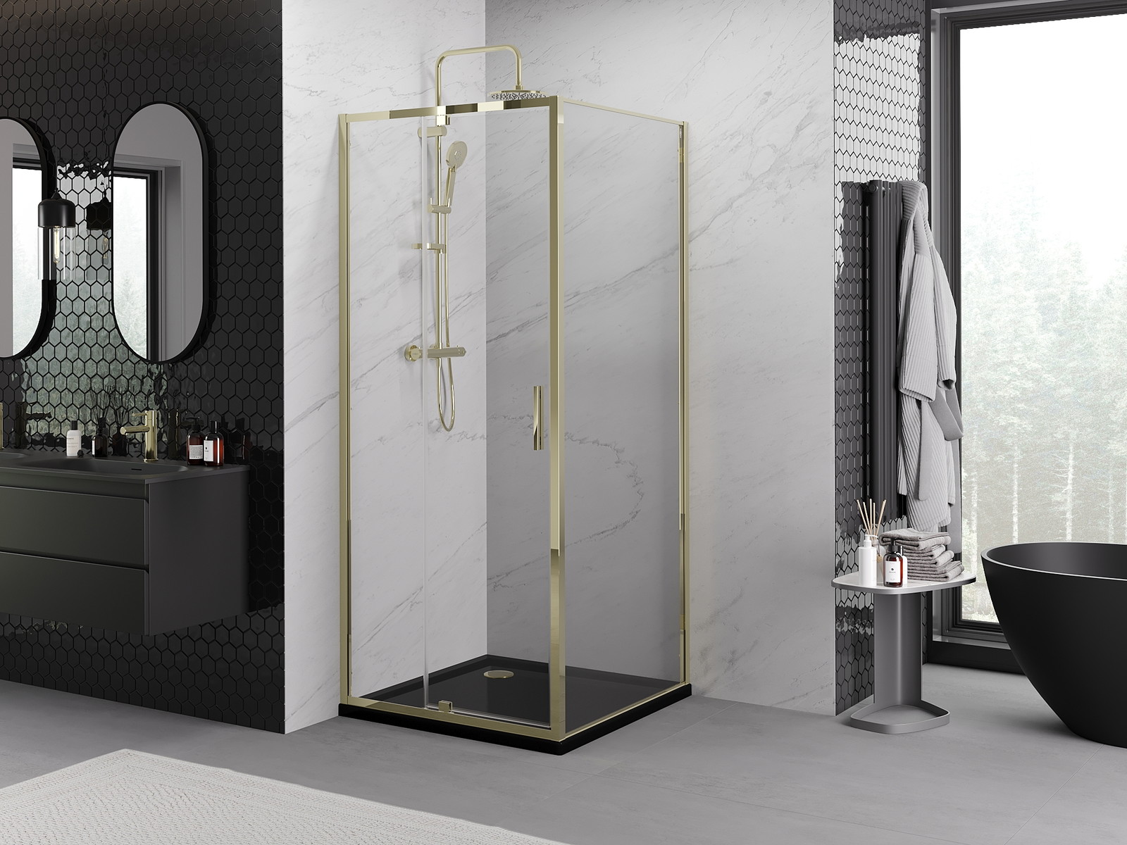 Mexen Exo otevírací sprchový kout 120 x 120 cm, transparentní, zlatý - 819-120-120-50-00